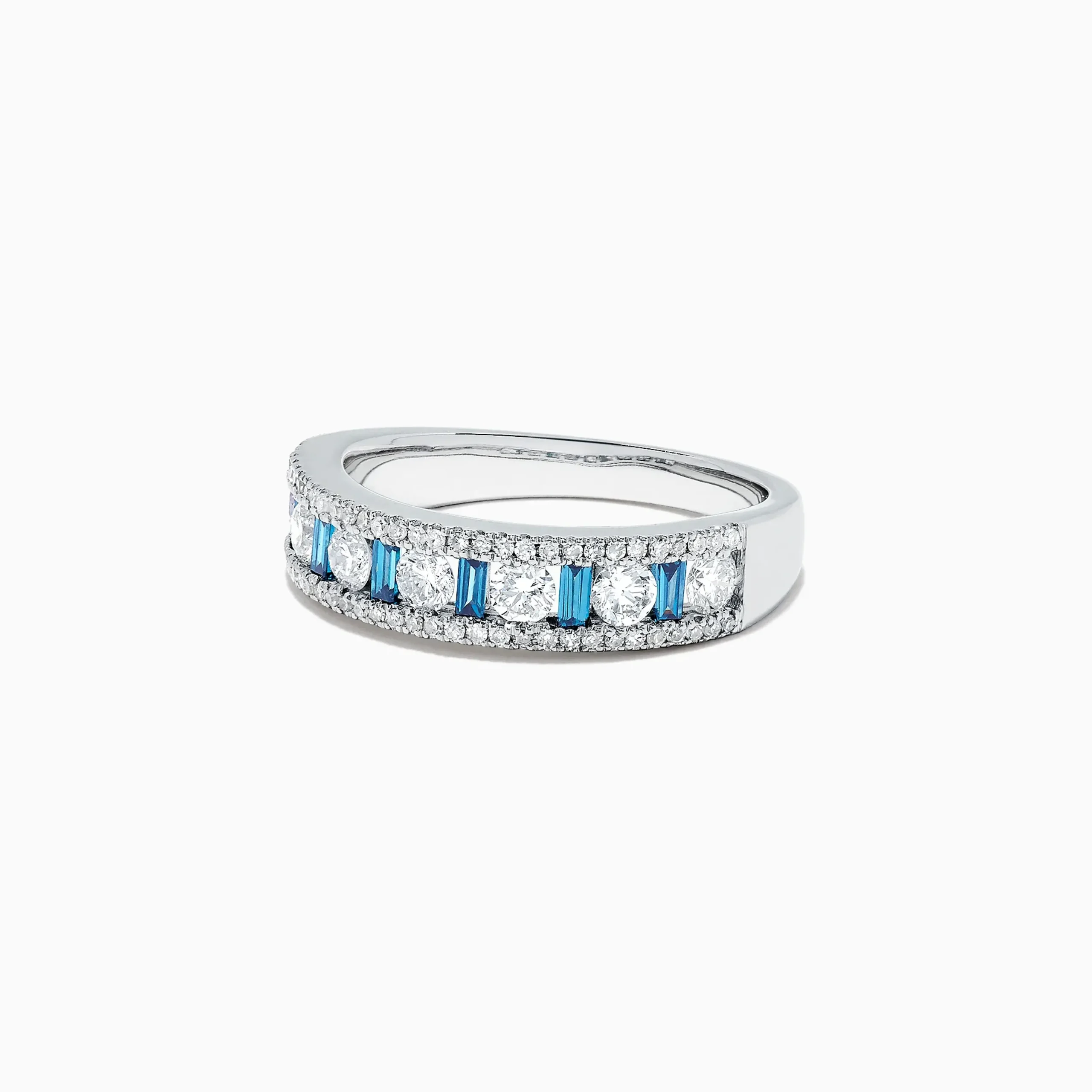 Metal:14K Gold Metal Color:WhiteStone: Multi Shape Diamond 0.97Effy Bella Bleu 14K White Gold Blue and White Diamond Rin…