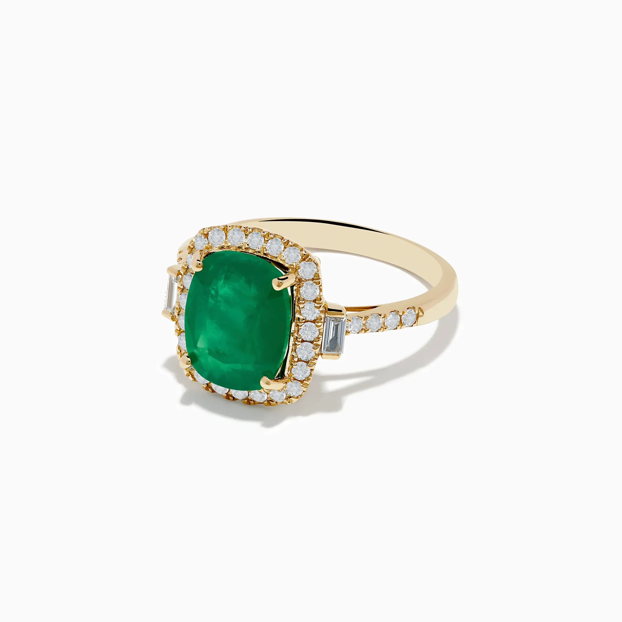 Metal:14K Gold Metal Color:YellowStone: Cushion Emerald 3.04 Stone 2: Multi Shape Diamond 0.4Brasilica 14K Yellow Gold E…