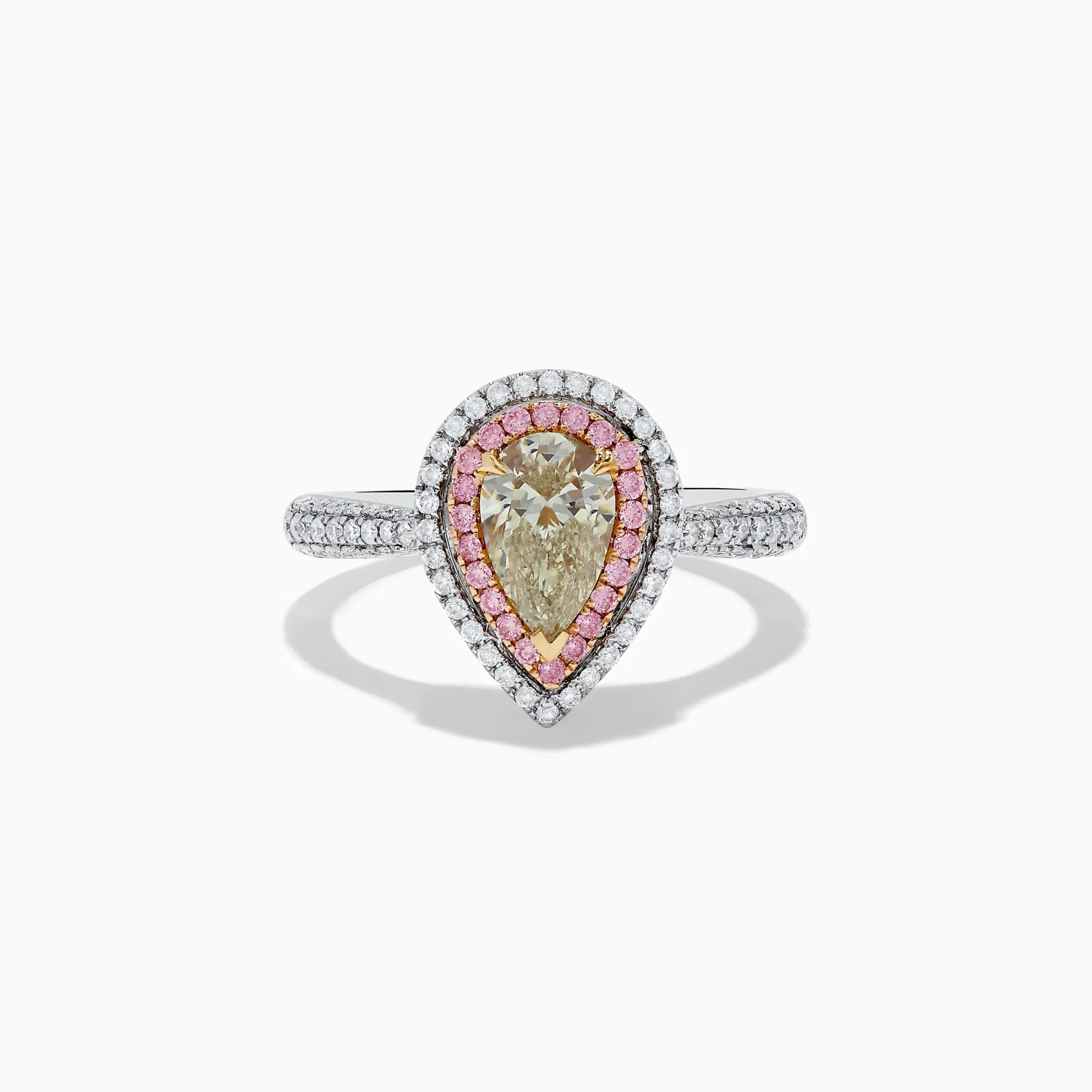 Effy Canare 18K Pear Shaped Yellow Diamond and Pink Diamond Halo Ring 1.52 TCW