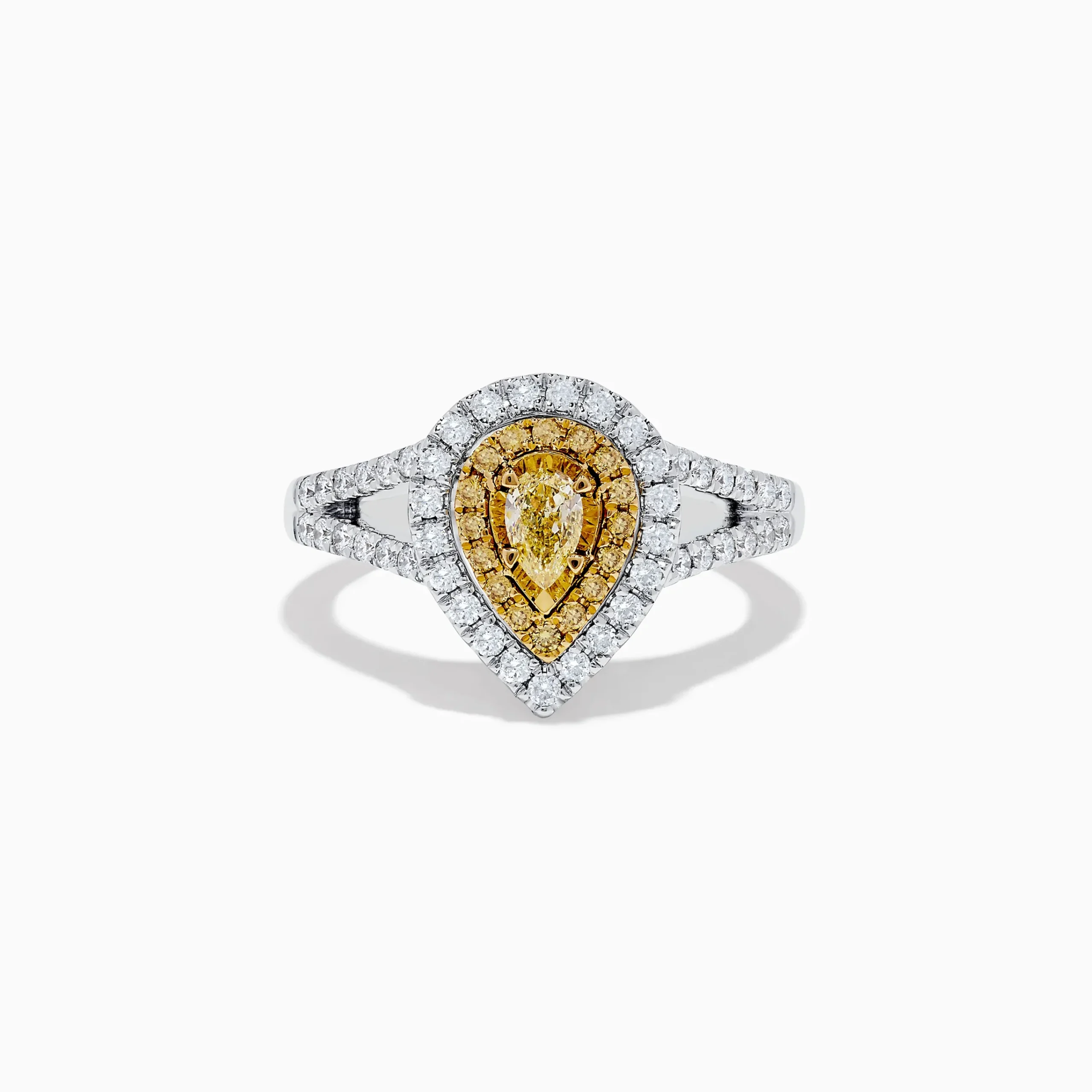 Effy Canare 18K Two-Tone Gold Pear Shaped Double Halo Yellow Diamond Ring