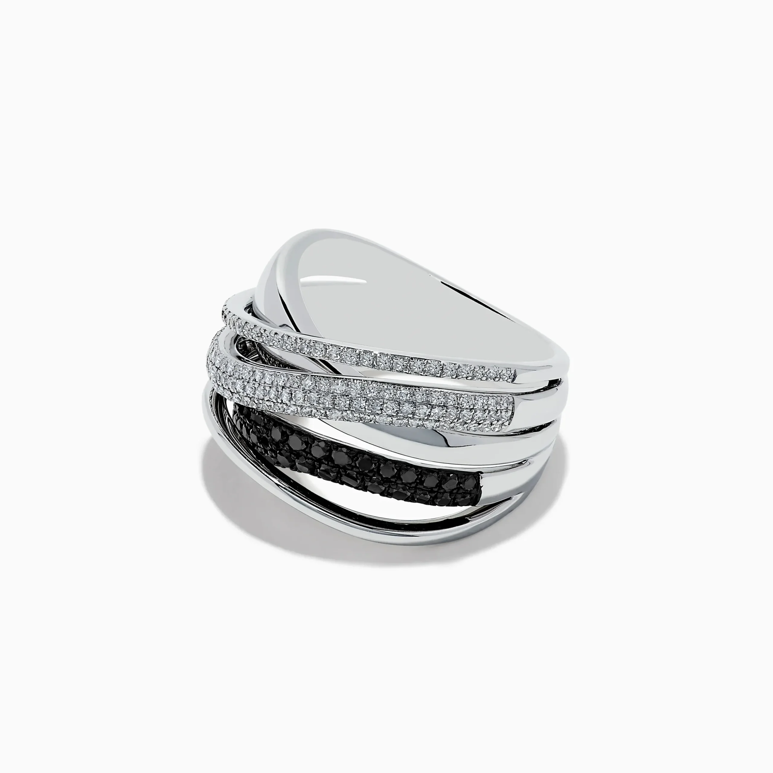 Effy Caviar 14K White Gold White and Black Diamond Crossover Ring