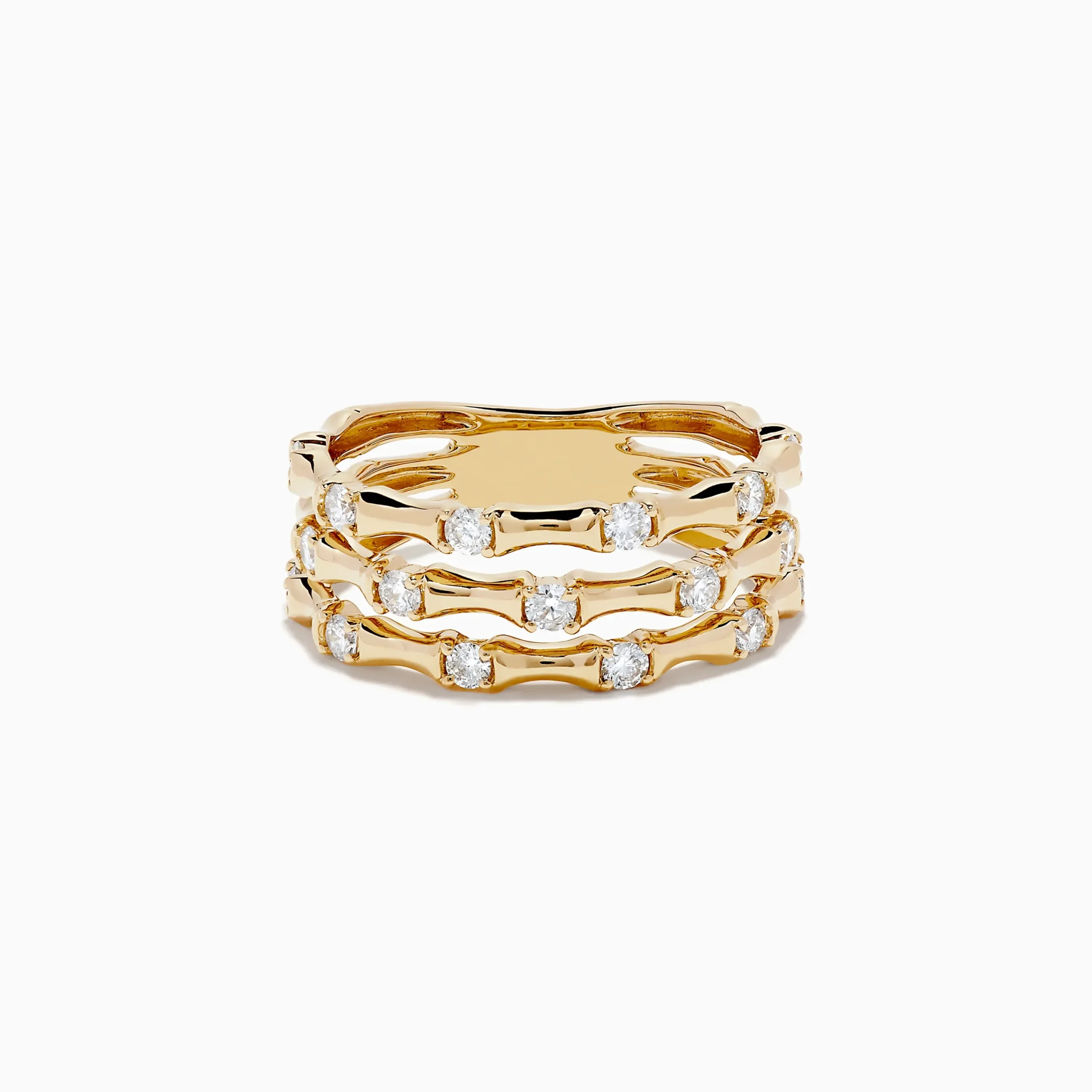 Metal:14K Gold Metal Color:YellowStone: Round Diamond 0.5Effy D’Oro 14K Yellow Gold Diamond Bamboo Ring 0.50 TCW