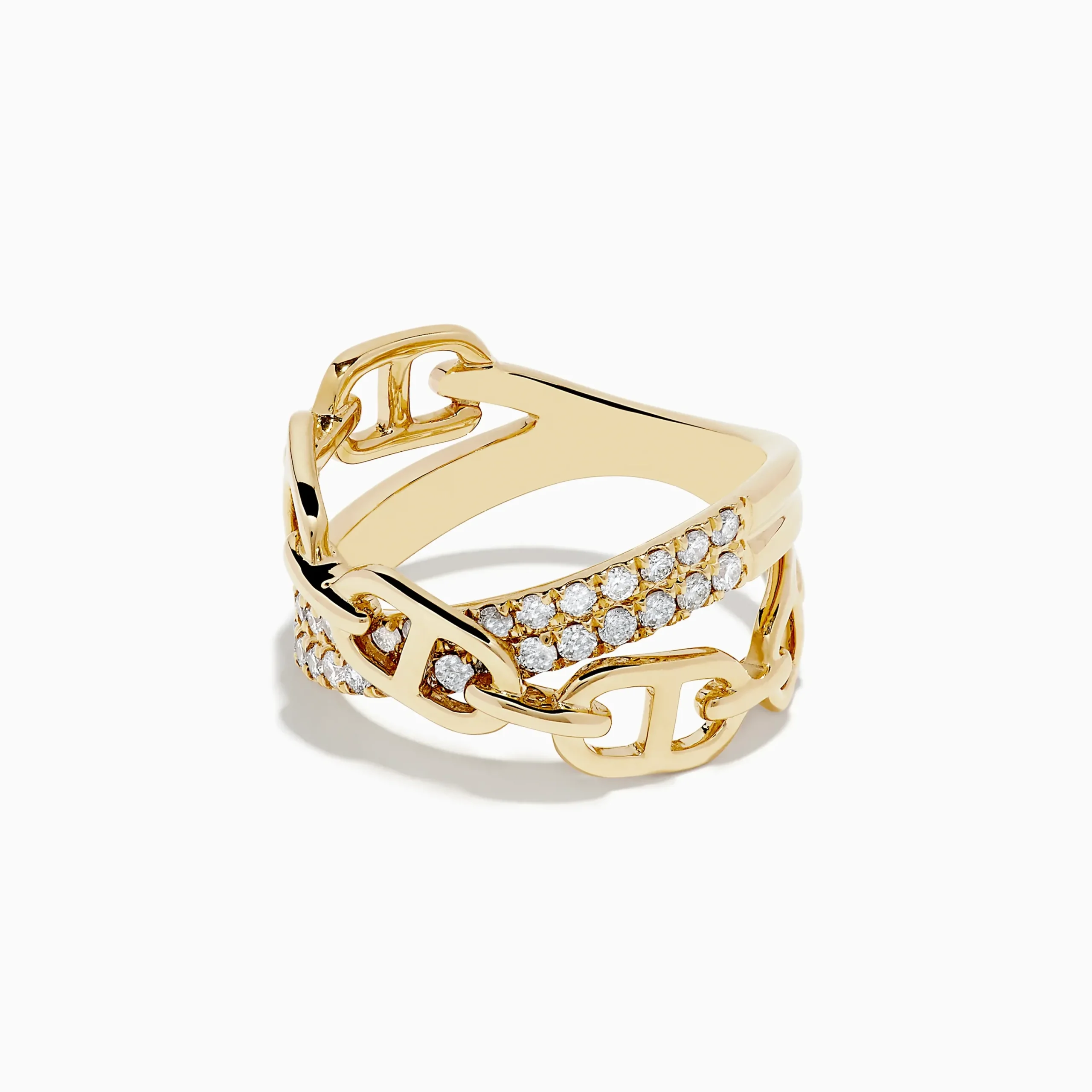 Metal:14K Gold Metal Color:YellowStone: Round Diamond 0.52Effy D’Oro 14K Yellow Gold Diamond Chain Link Crossover Ring