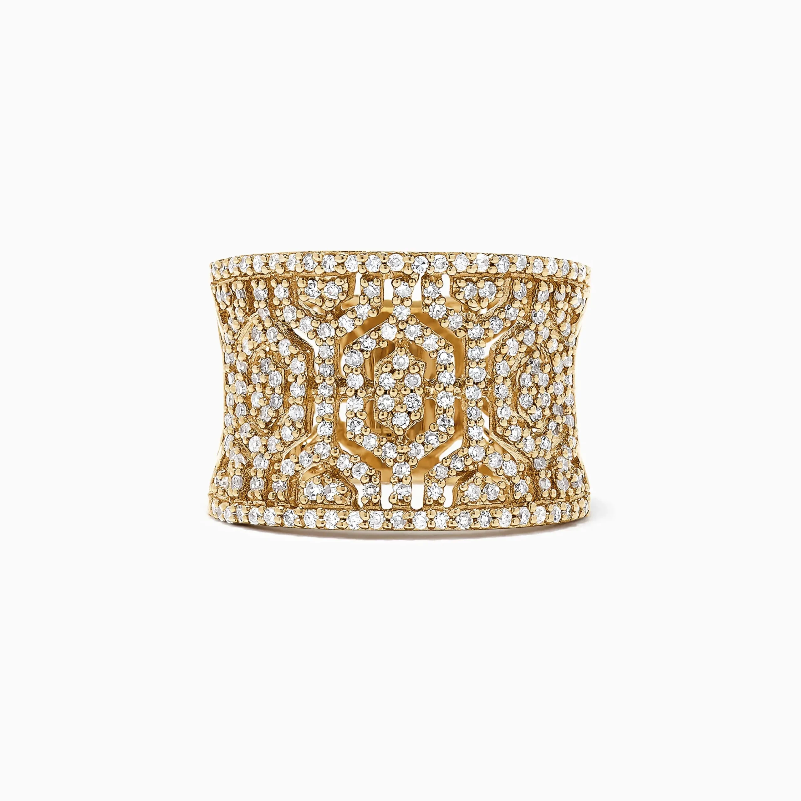 Metal:14K Gold Metal Color:YellowStone: Diamond 0.79Effy D’Oro 14K Yellow Gold Diamond Maze Ring, 0.79 TCW