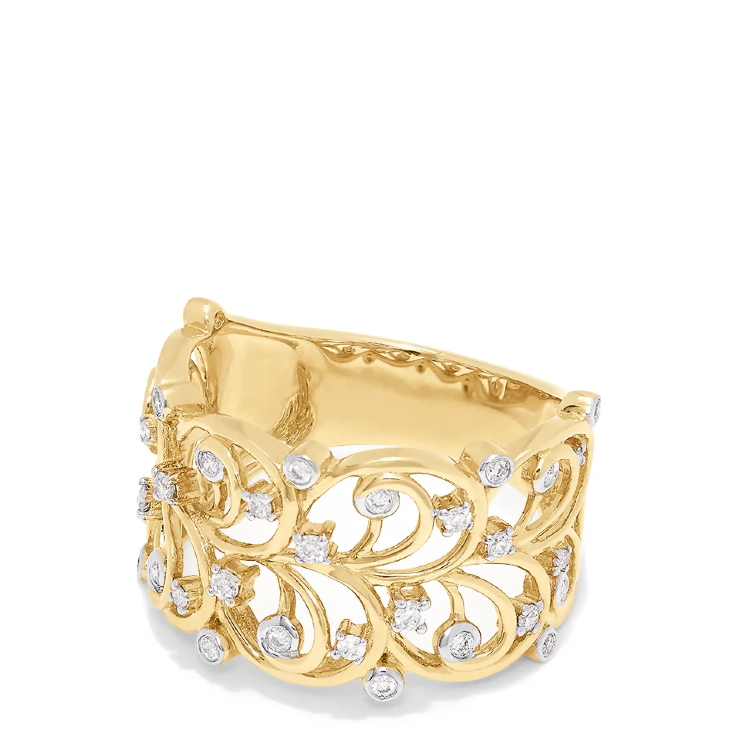 Metal:14K Gold Metal Color:YellowStone: Round Diamond 0.26Effy D’Oro 14K Yellow Gold Diamond Vine Ring, 0.26 TCW