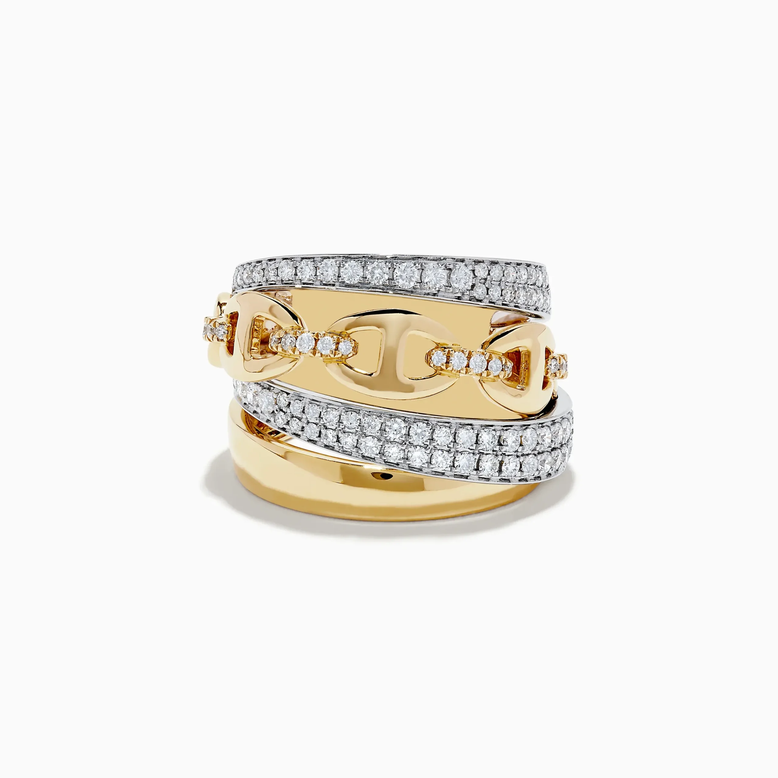 Metal:14K Gold Metal Color:Yellow and WhiteStone: Round Diamond 1.03Effy Duo 14K 2-Tone Gold Anchor Chain Diamond Ring
