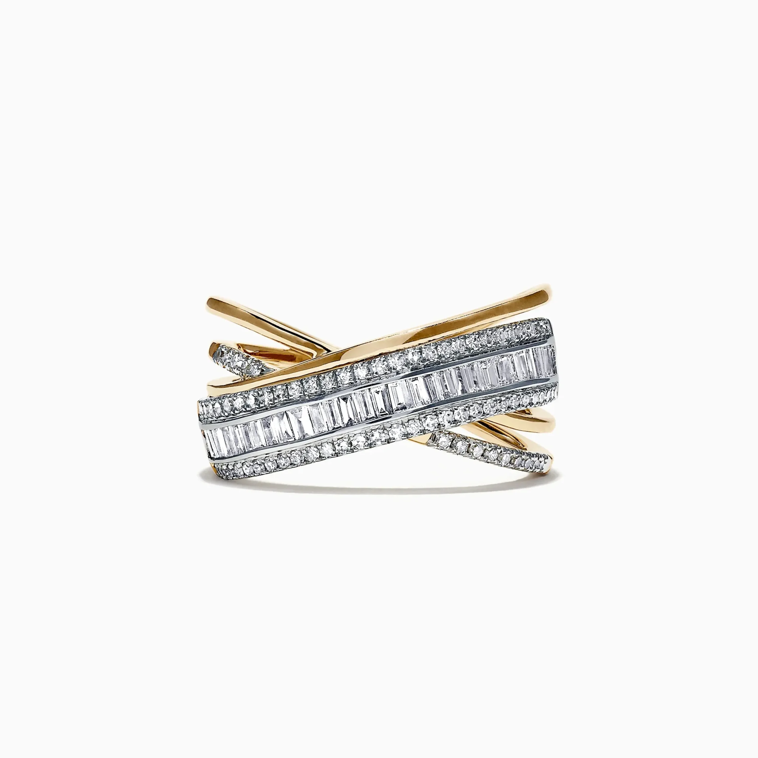 Effy Duo 14K 2 Tone Gold Diamond Crossover Ring, 0.77 TCW