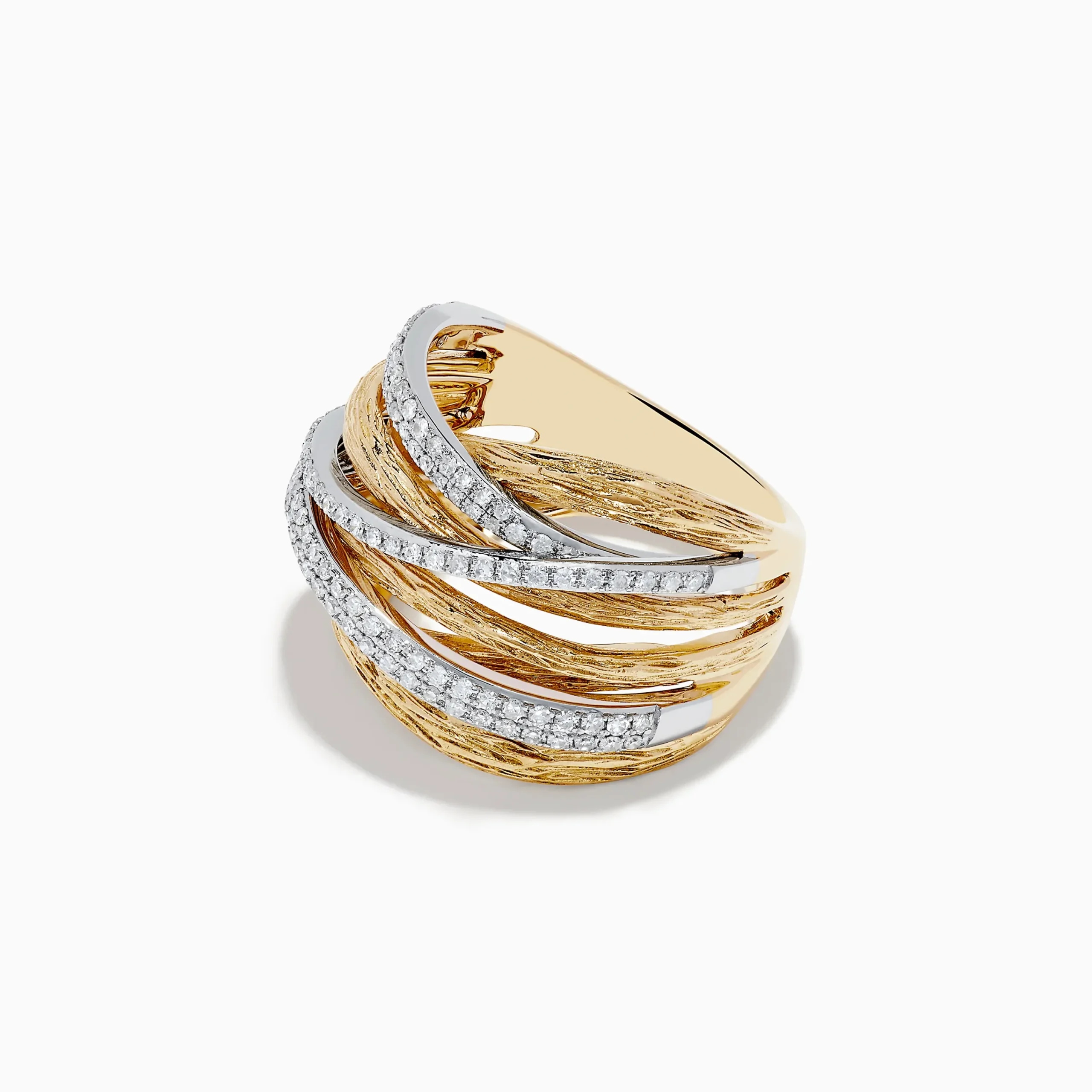 Effy Duo 14K Two-Tone Textured Gold Pave Diamond Crossover Ring