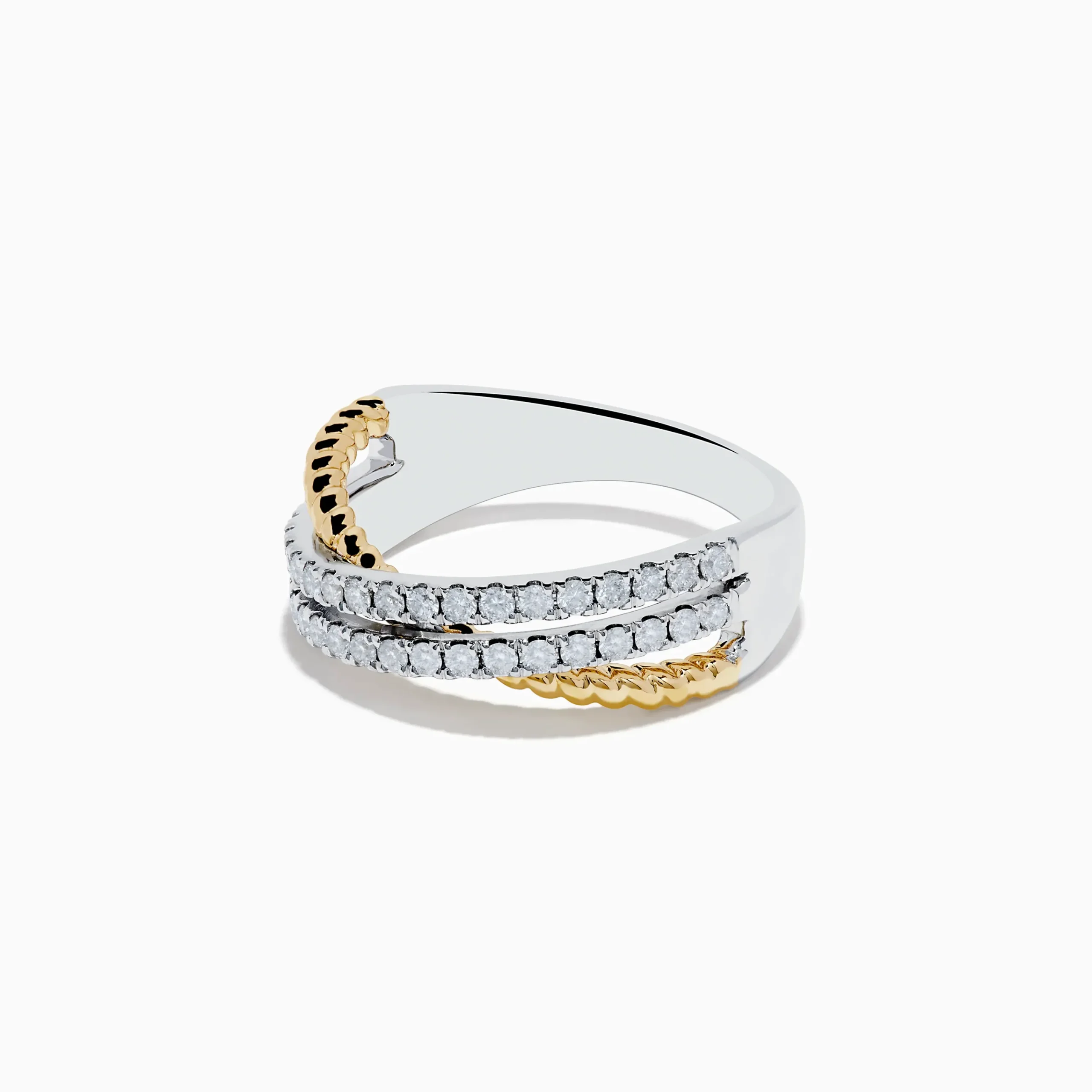 Metal:14K Gold Metal Color:Yellow and WhiteStone: Round Diamond 0.53Duo 14K White & Yellow Gold Diamond Crossover Ri…
