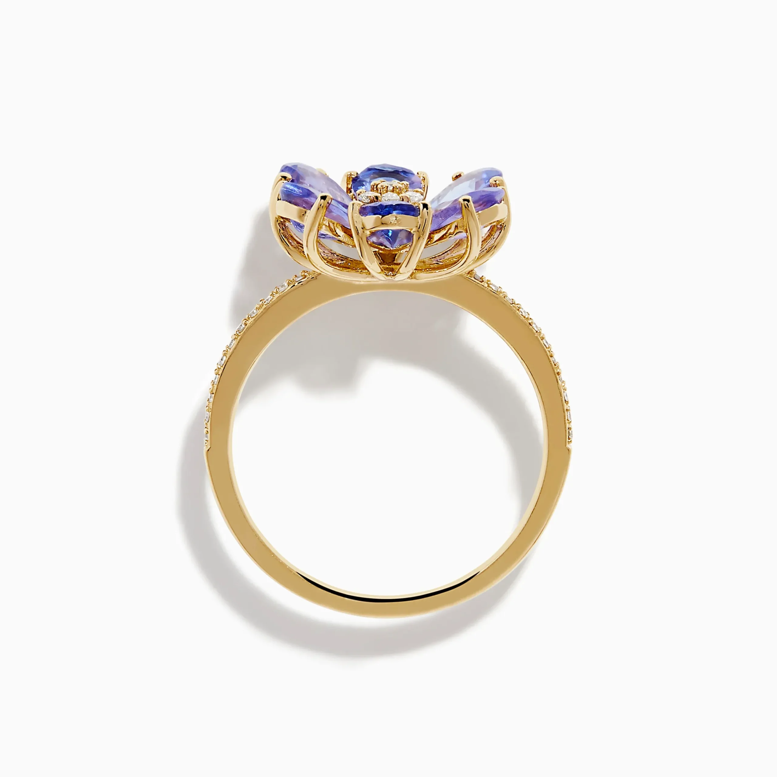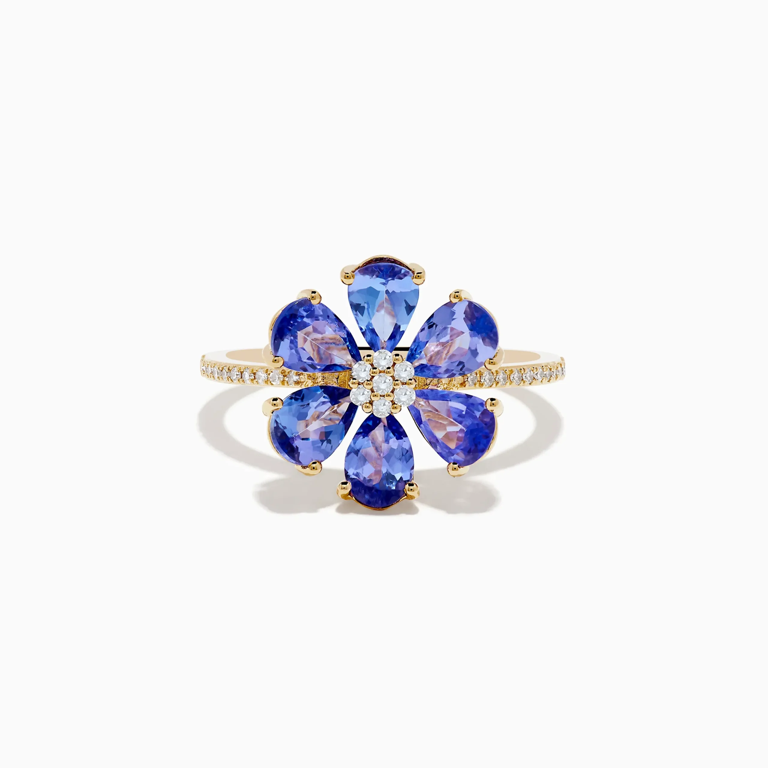 Nahla 14K Yellow Gold Tanzanite and Diamond Flower Ring