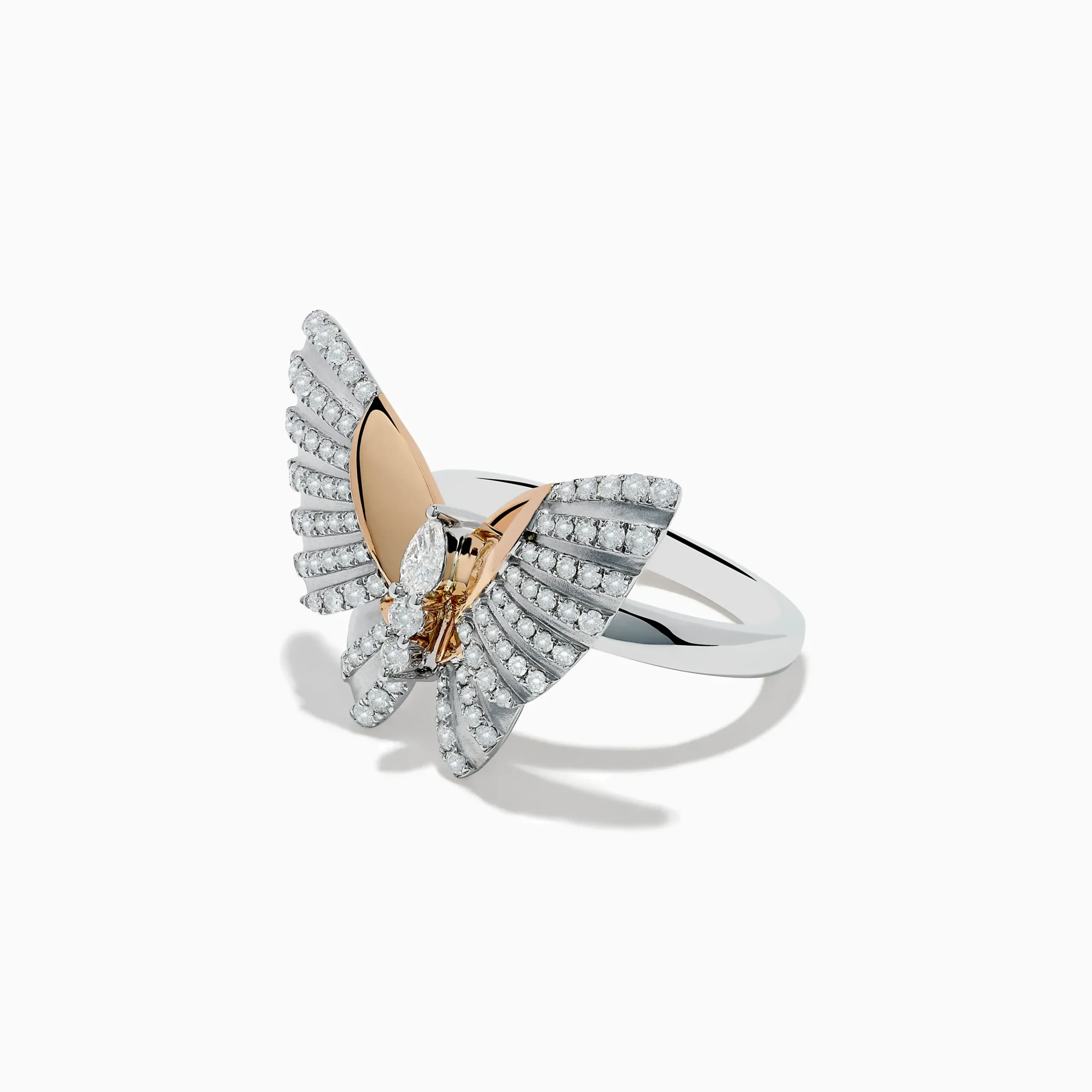Metal:14K Gold Metal Color:Rose and WhiteStone: Multi Shape Diamond 0.68Nature 14K Two Tone Gold Diamond Butterfly Ring