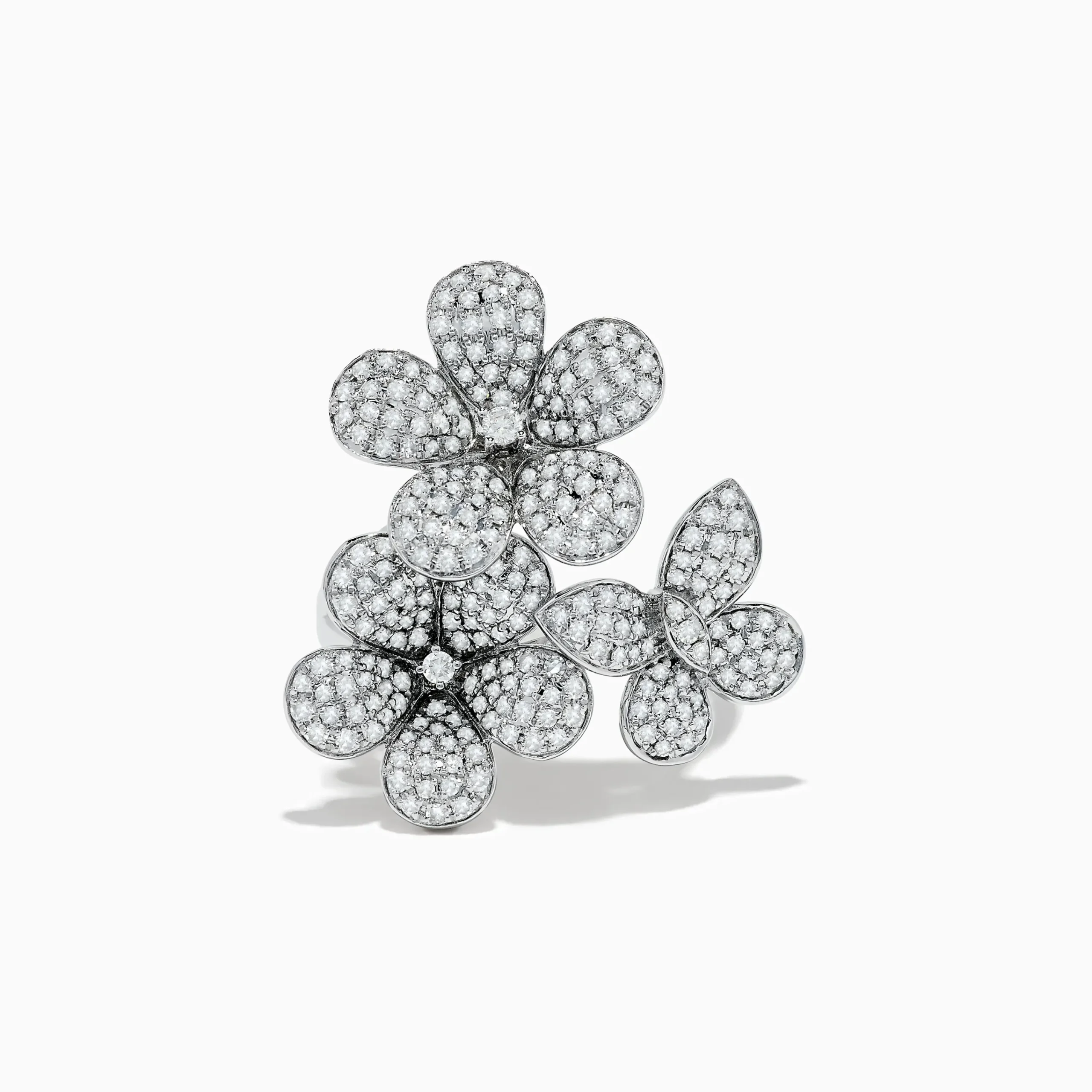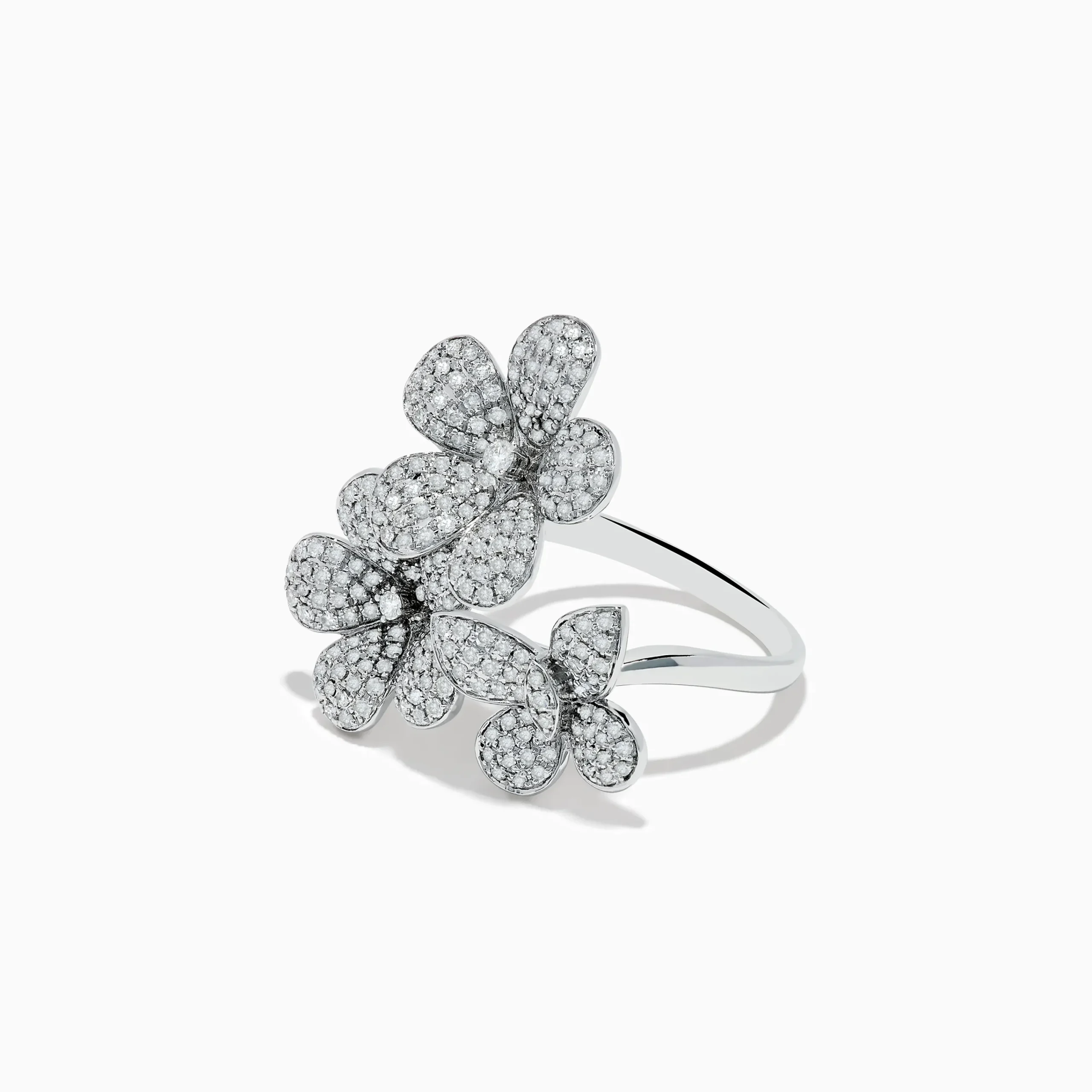 Nature 14K White Gold Diamond Flowers and Butterfly Ring