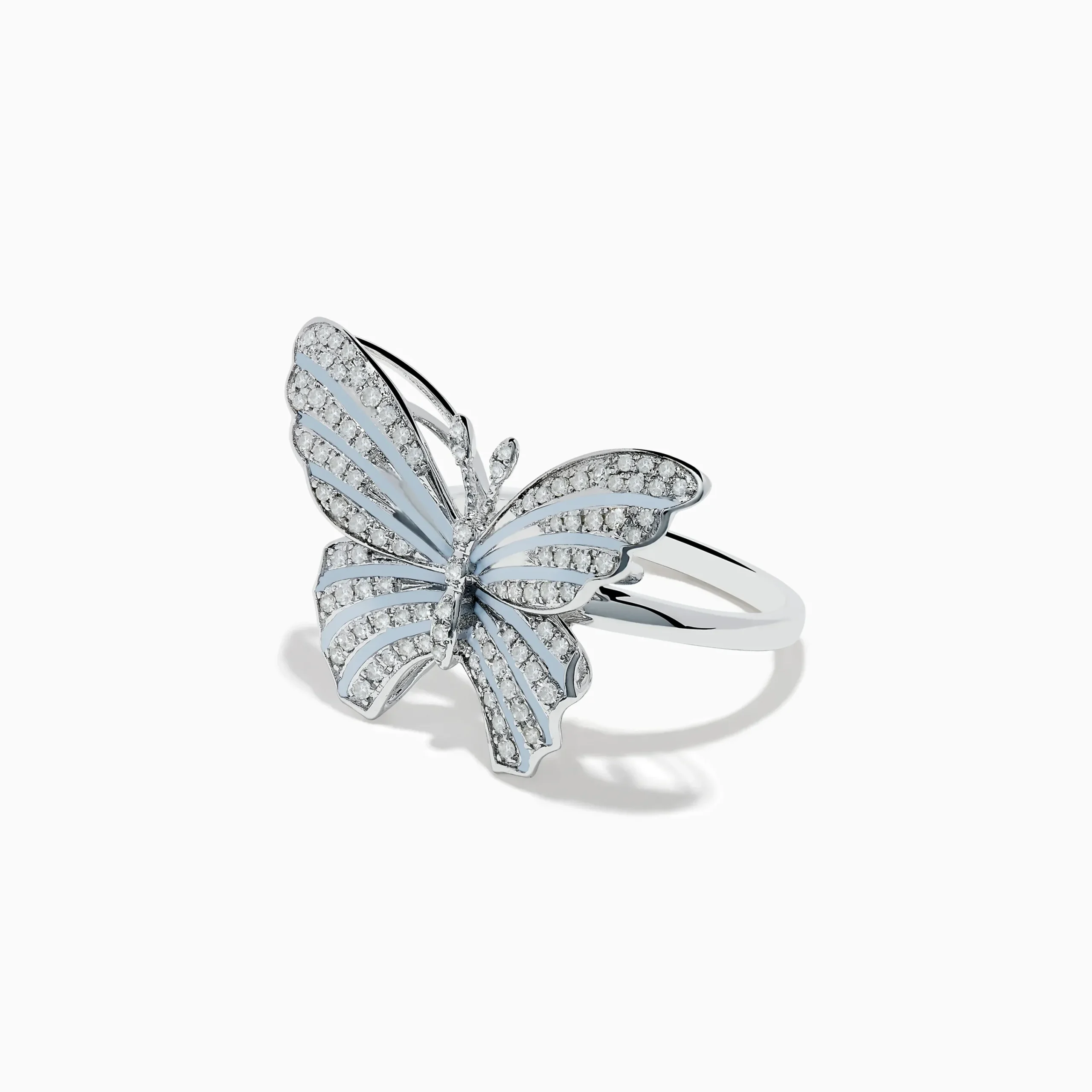 Nature 14K White Gold Diamond with White Enamel Butterfly Ring