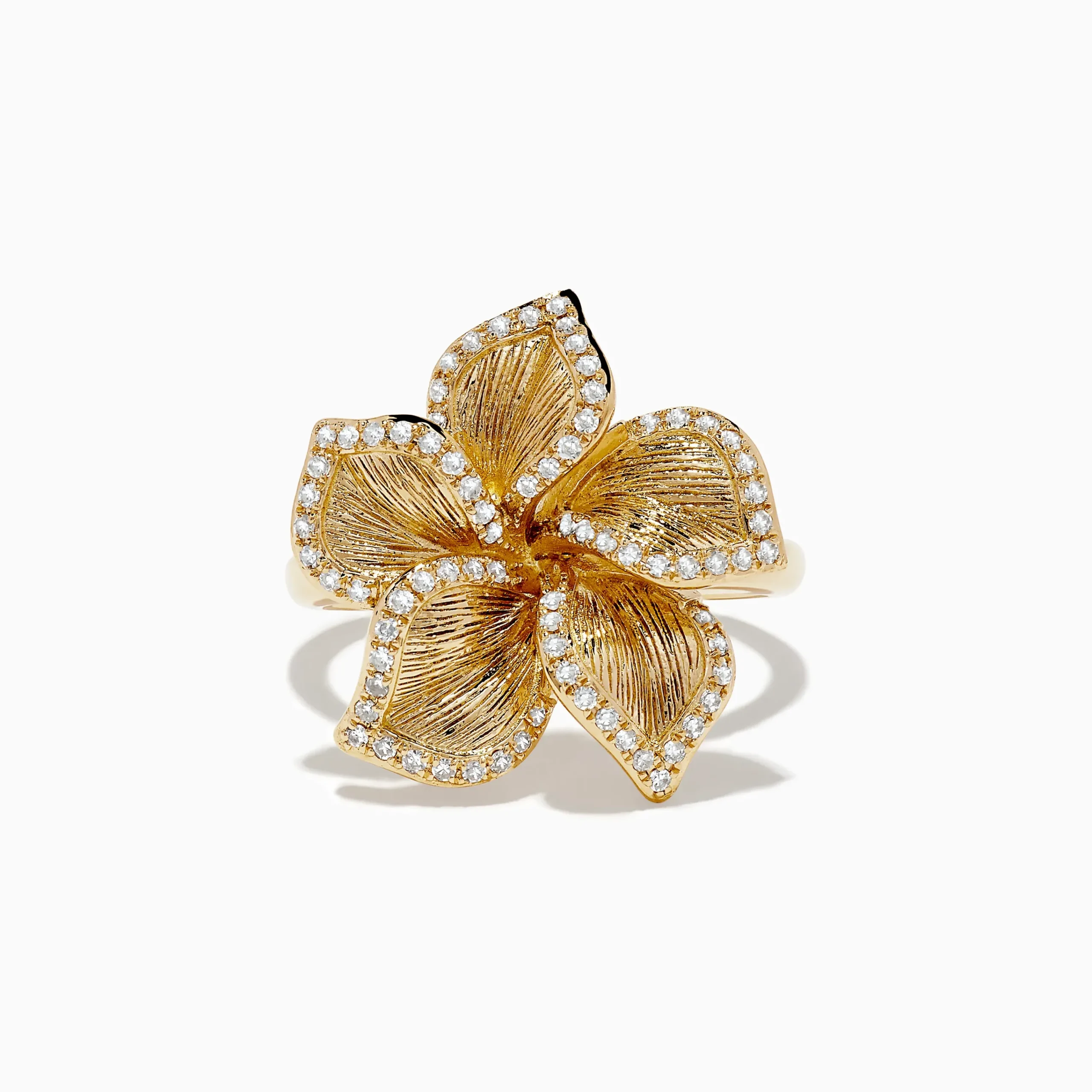 Effy Nature 14K Yellow Gold Diamond Flower Ring 0.31 TCW