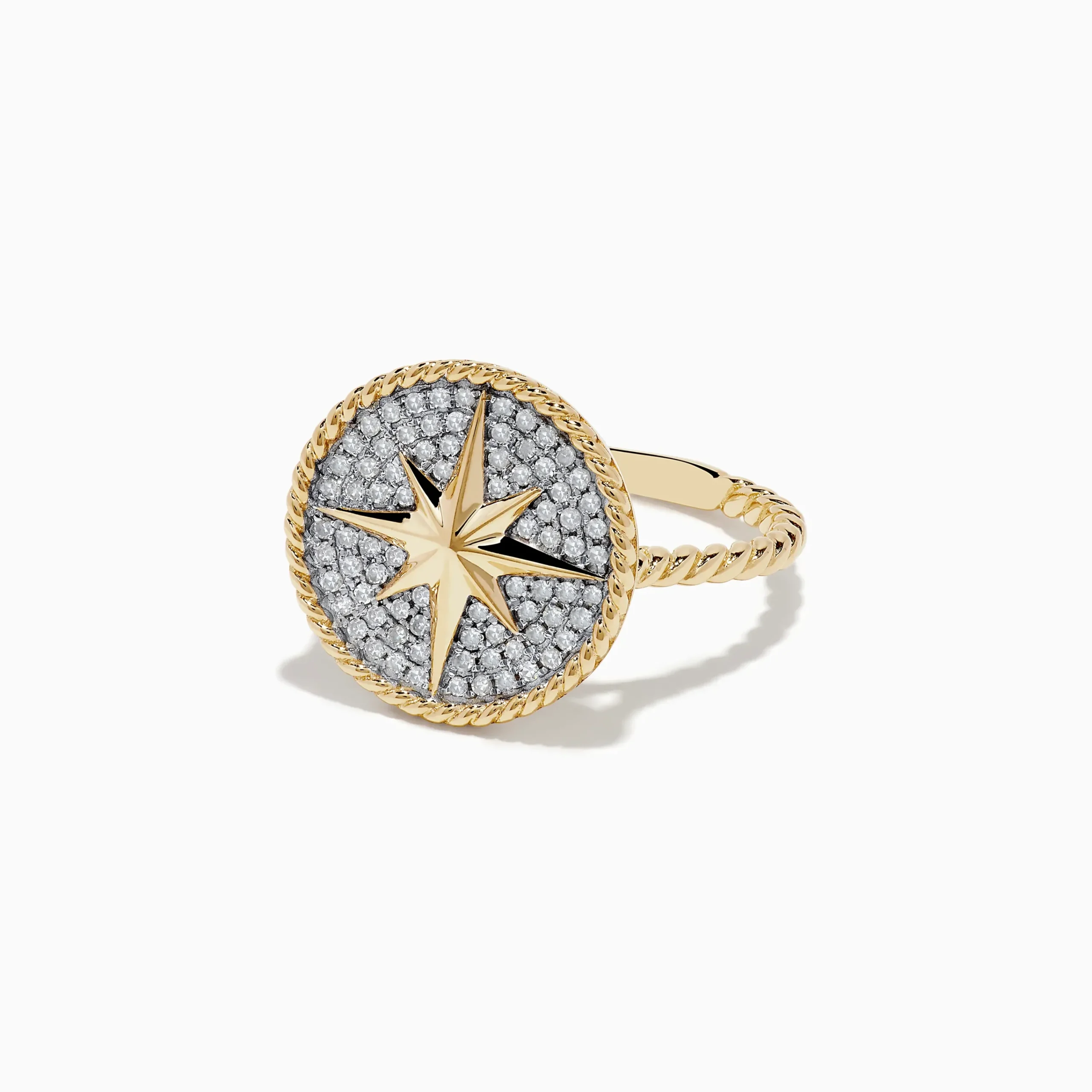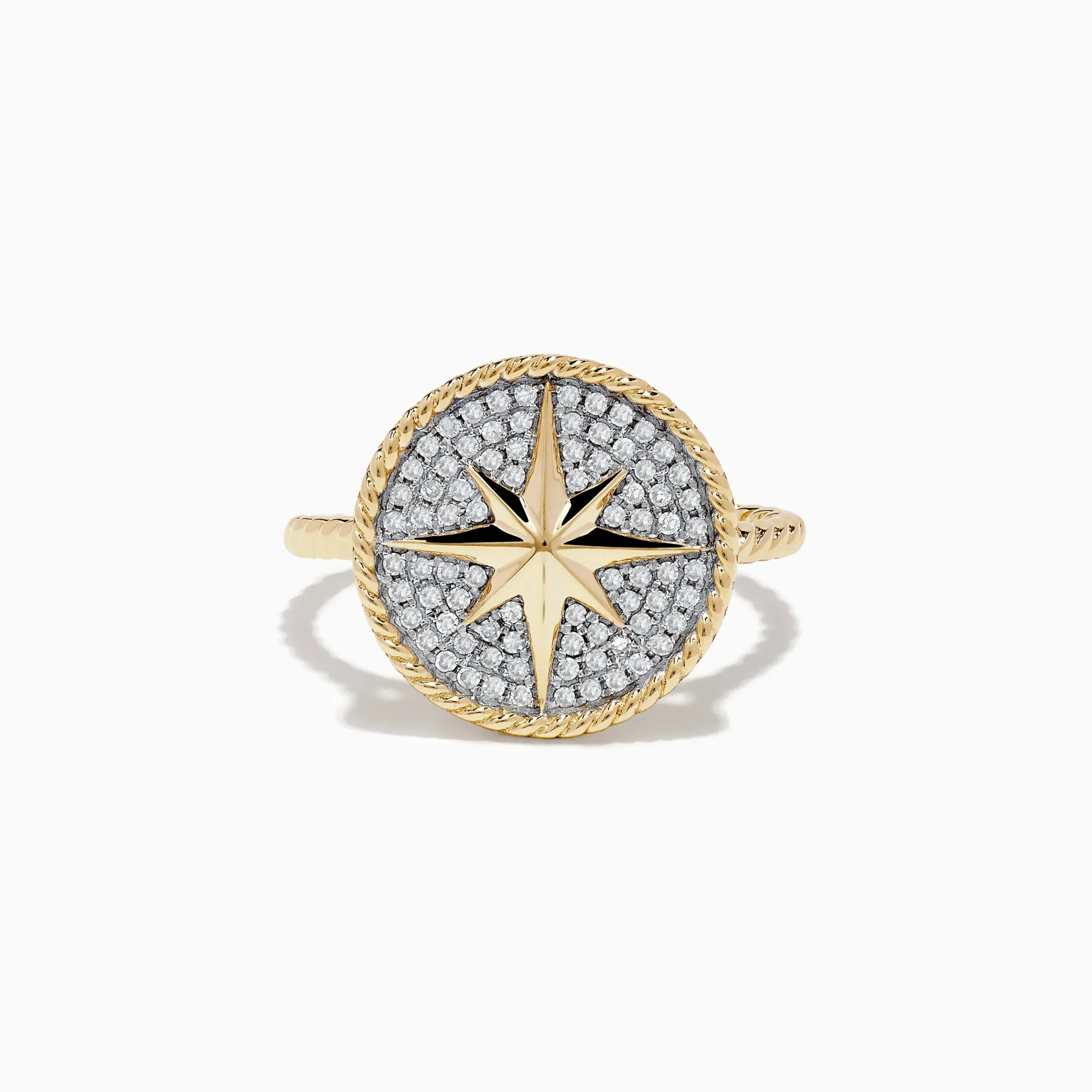 Metal:14K Gold Metal Color:YellowStone: Round Diamond 0.31Effy Novelty 14 Karat Yellow Gold Diamond Compass Ring