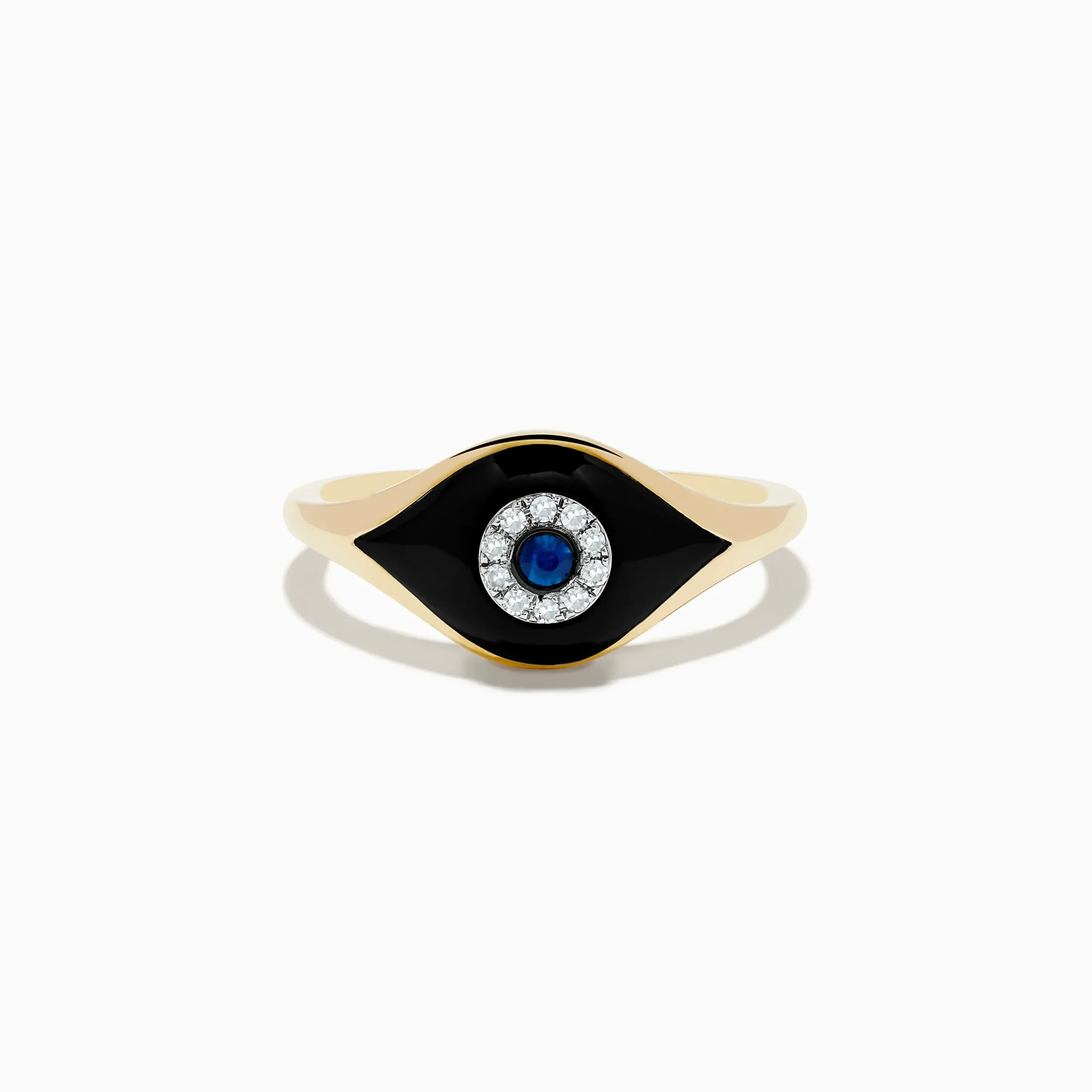 Novelty 14K Yellow Gold Sapphire Agate and Diamond Evil Eye Ring