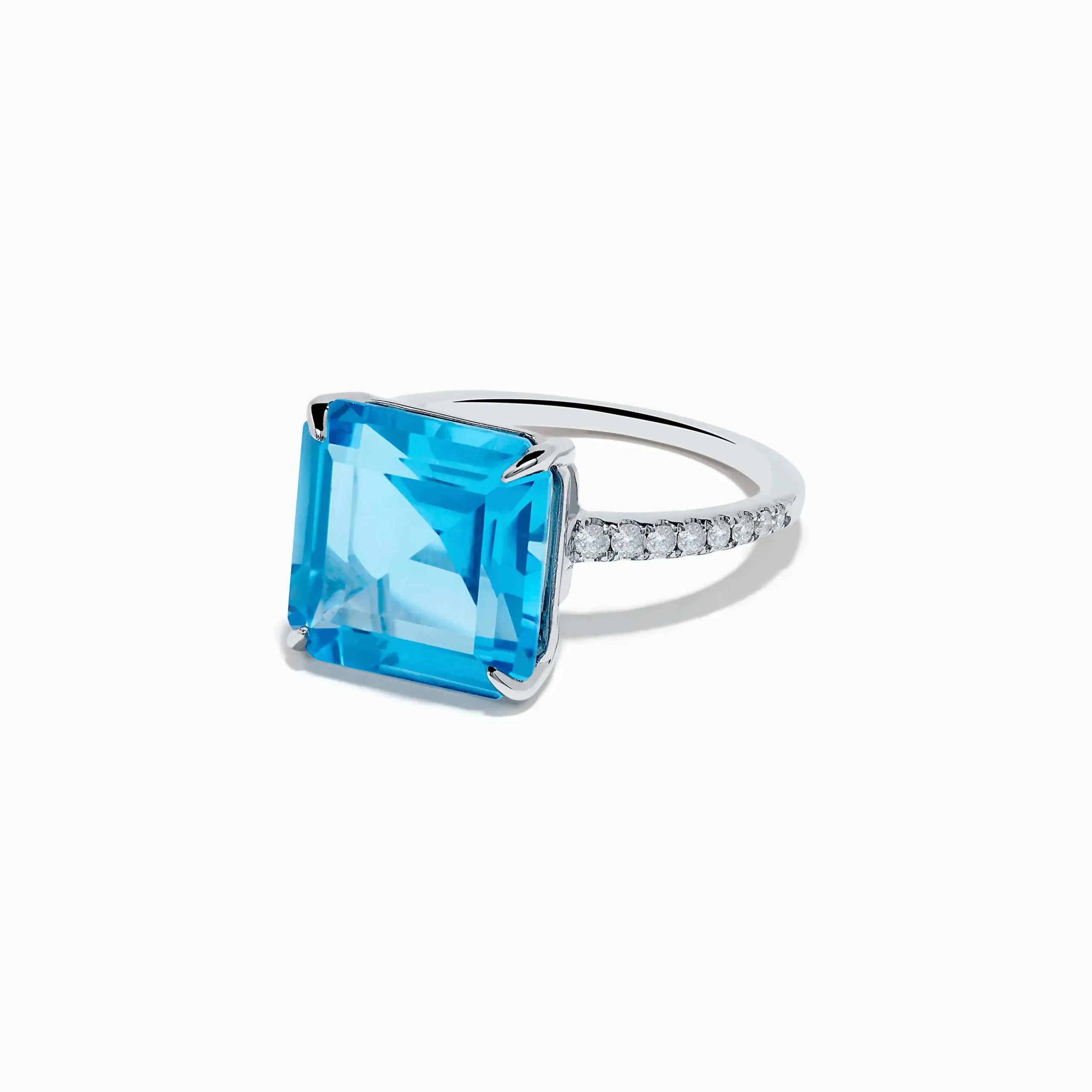 Metal:14K Gold Metal Color:WhiteStone: Round Diamond 0.17 Stone 2: Square Blue Topaz 8.8Ocean Bleu 14K White Gold Blue T…