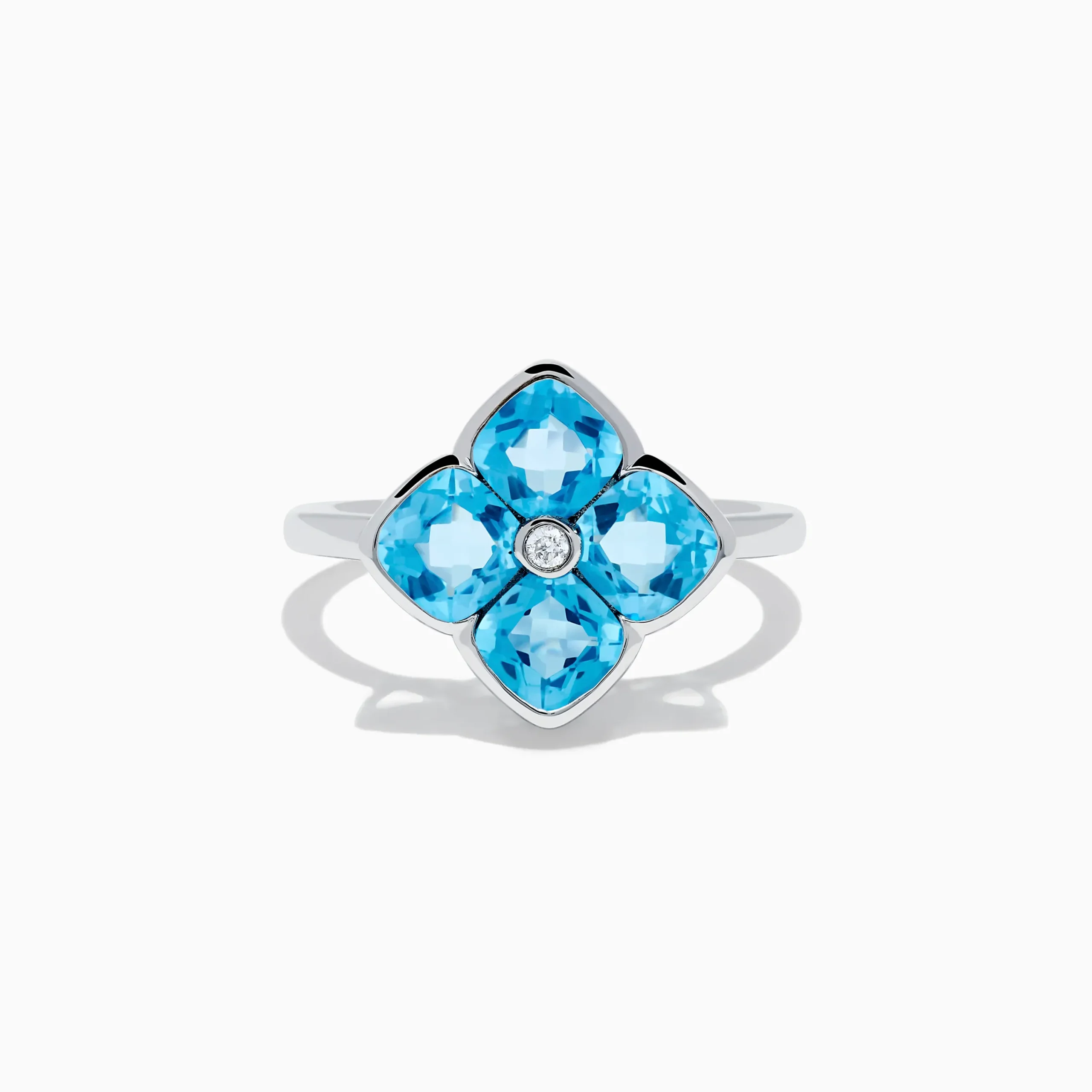 Metal:14K Gold Metal Color:WhiteStone: Cushion Blue Topaz 2.85 Stone 2: Round Diamond 0.02Ocean Bleu 14K White Gold Blue…