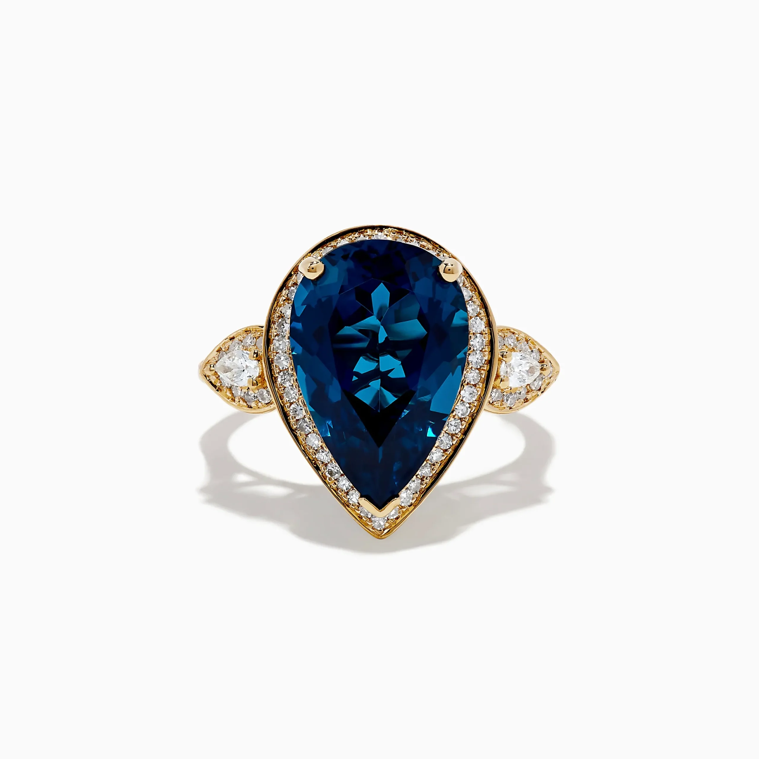 Effy Ocean Bleu 14K Yellow Gold Pear Shaped Blue Topaz and Diamond Cocktail Ring