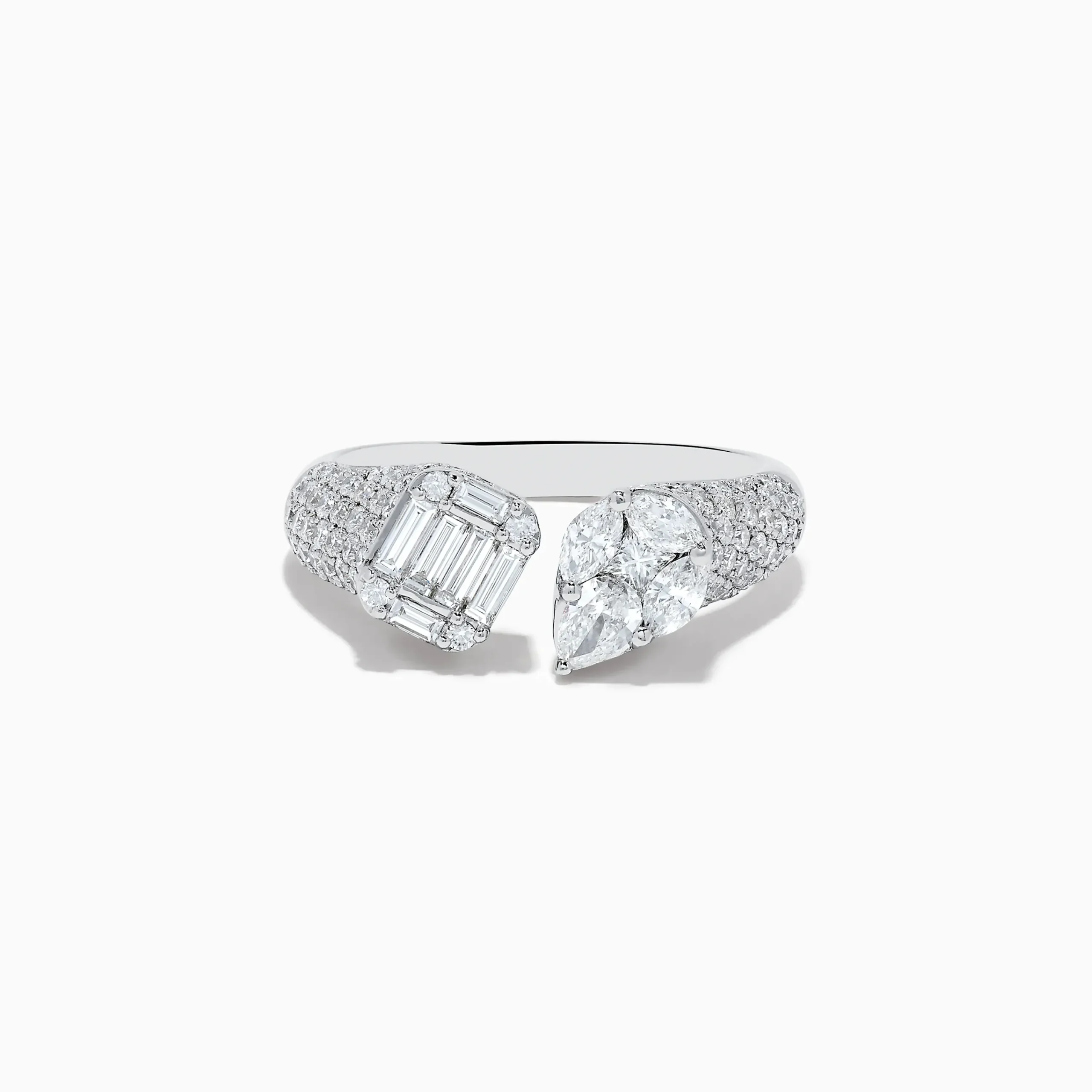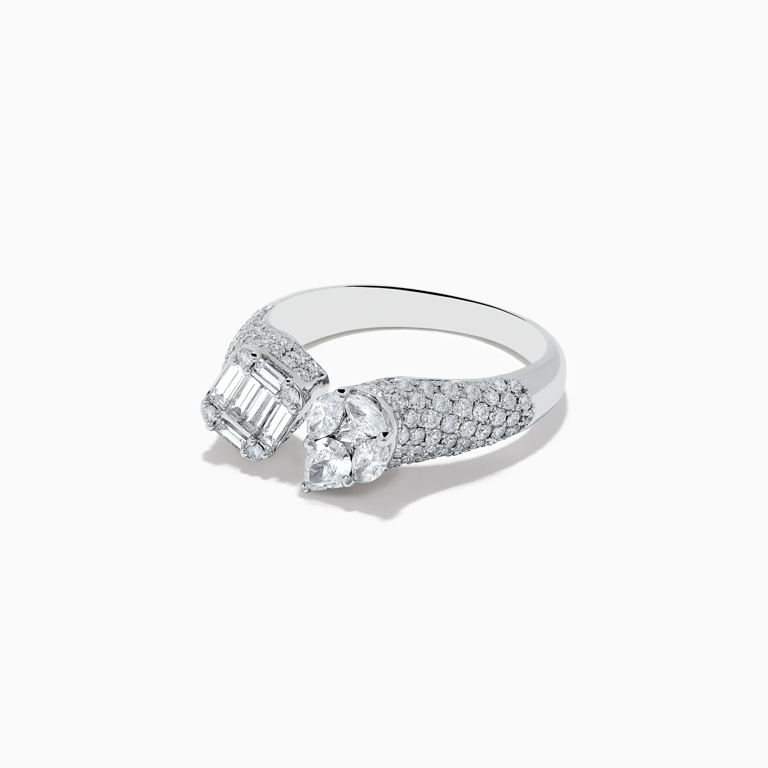 Metal:14K Gold Metal Color:WhiteStone: Multi Shape Diamond 1.49Effy Pave Classica 14k White Gold Open Shank Diamond Ring…