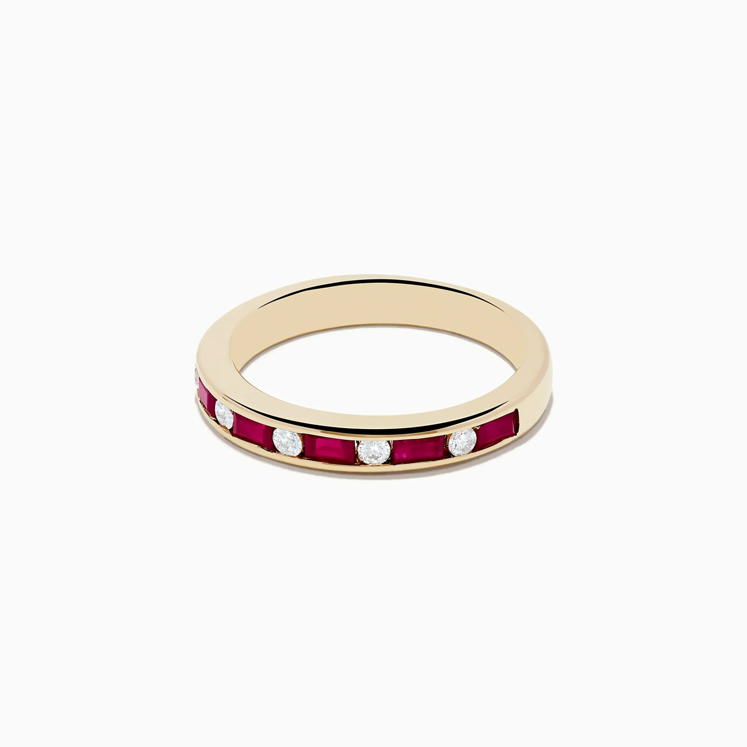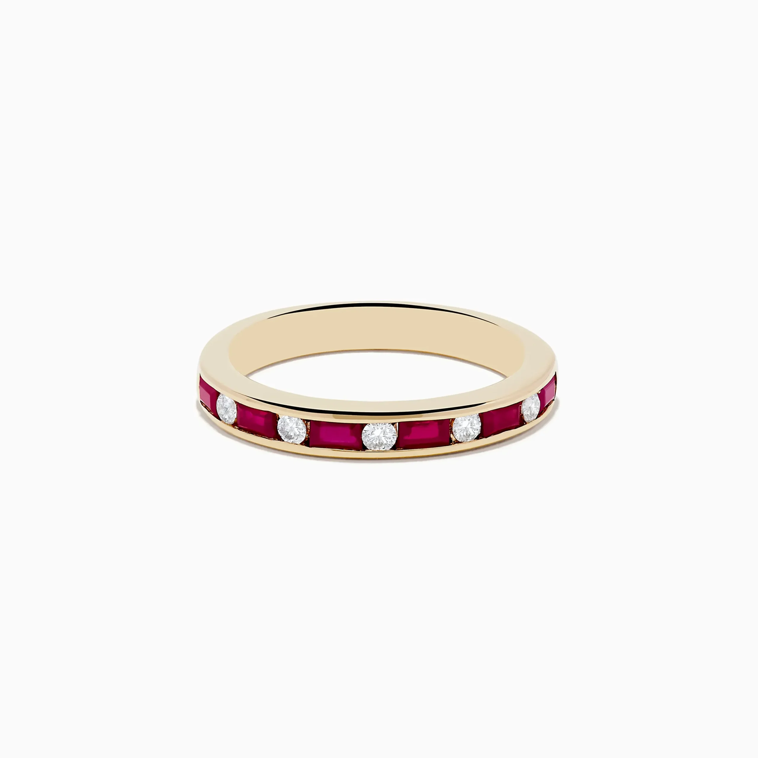 Effy Ruby Royal 14K Yellow Gold Ruby and Diamond Channel-Set Stacking Band, 0.72 TCW