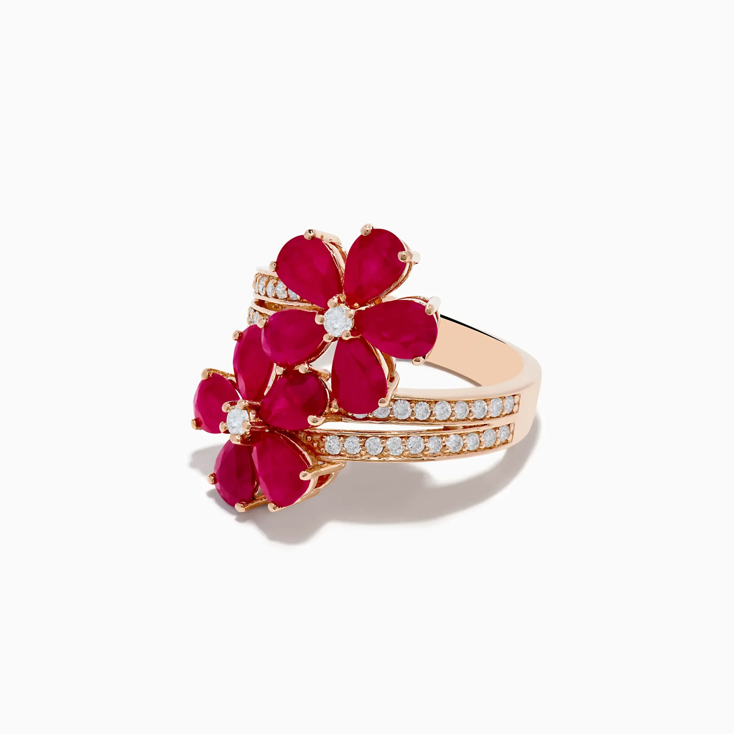 Ruby Royale 14K Rose Gold Ruby and Diamond Floral Ring