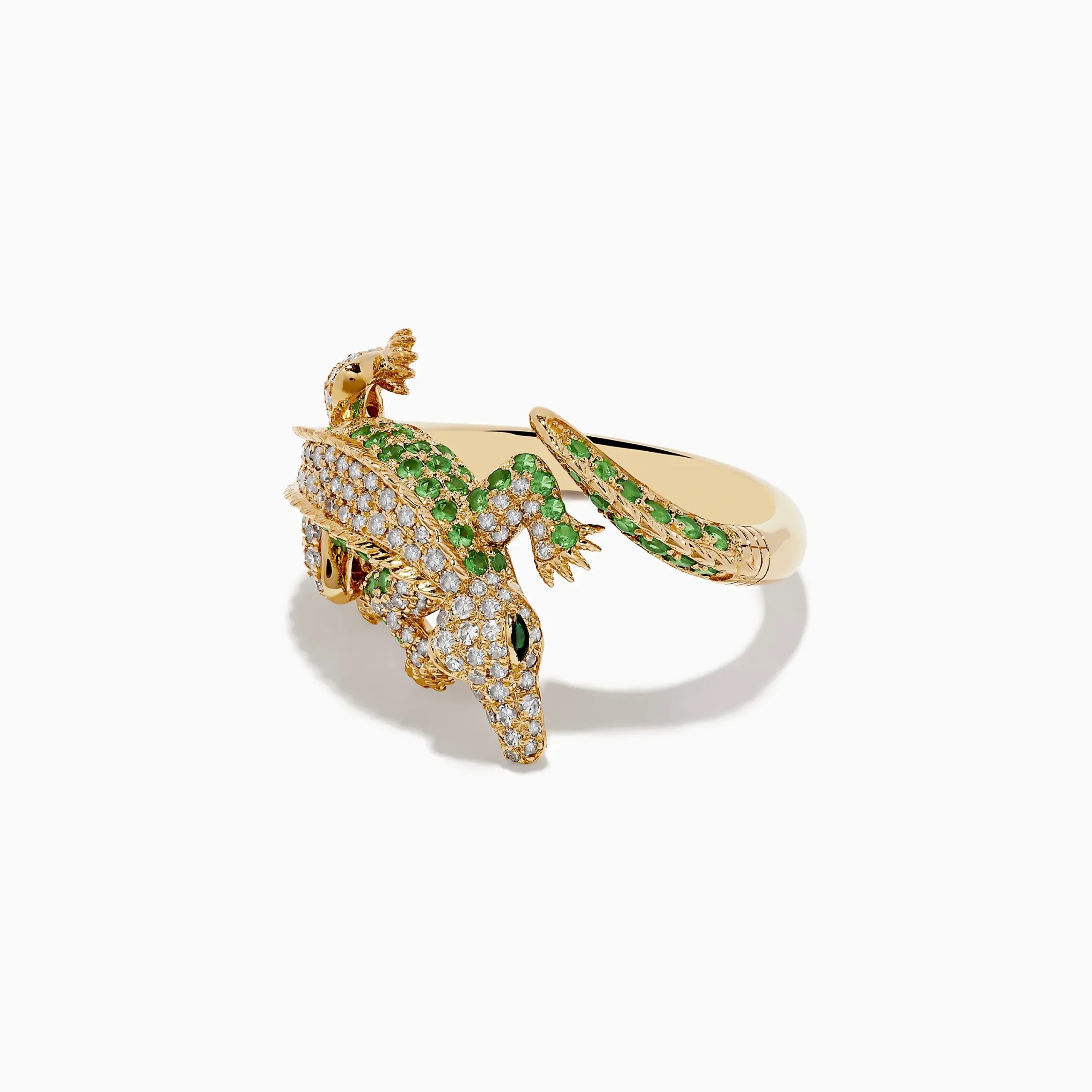 Effy Safari 14K Yellow Gold Diamond, Tsavorite, and Emerald Crocodile Ring