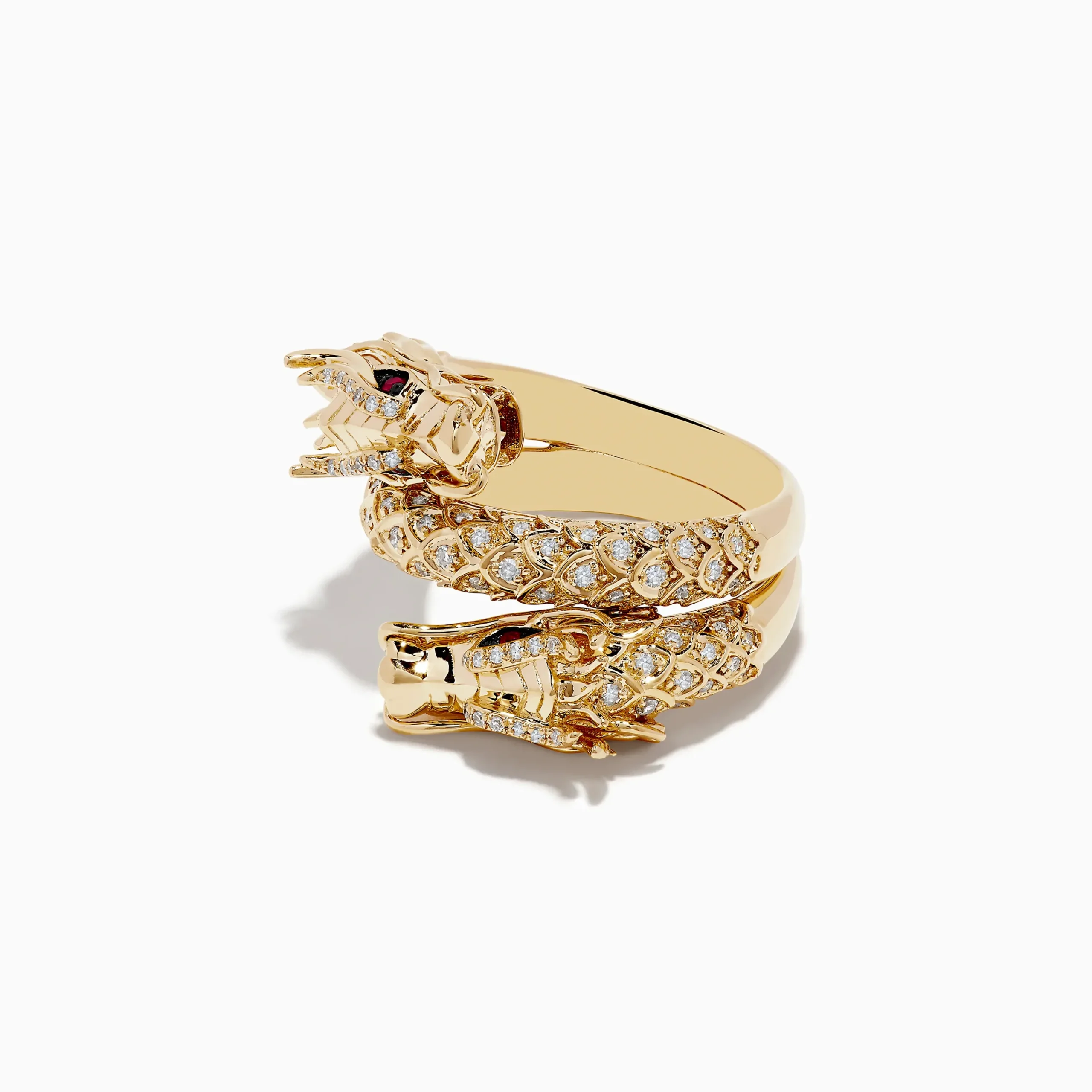 Effy Safari 14K Yellow Gold Ruby and Diamond Dragon Wrap Ring