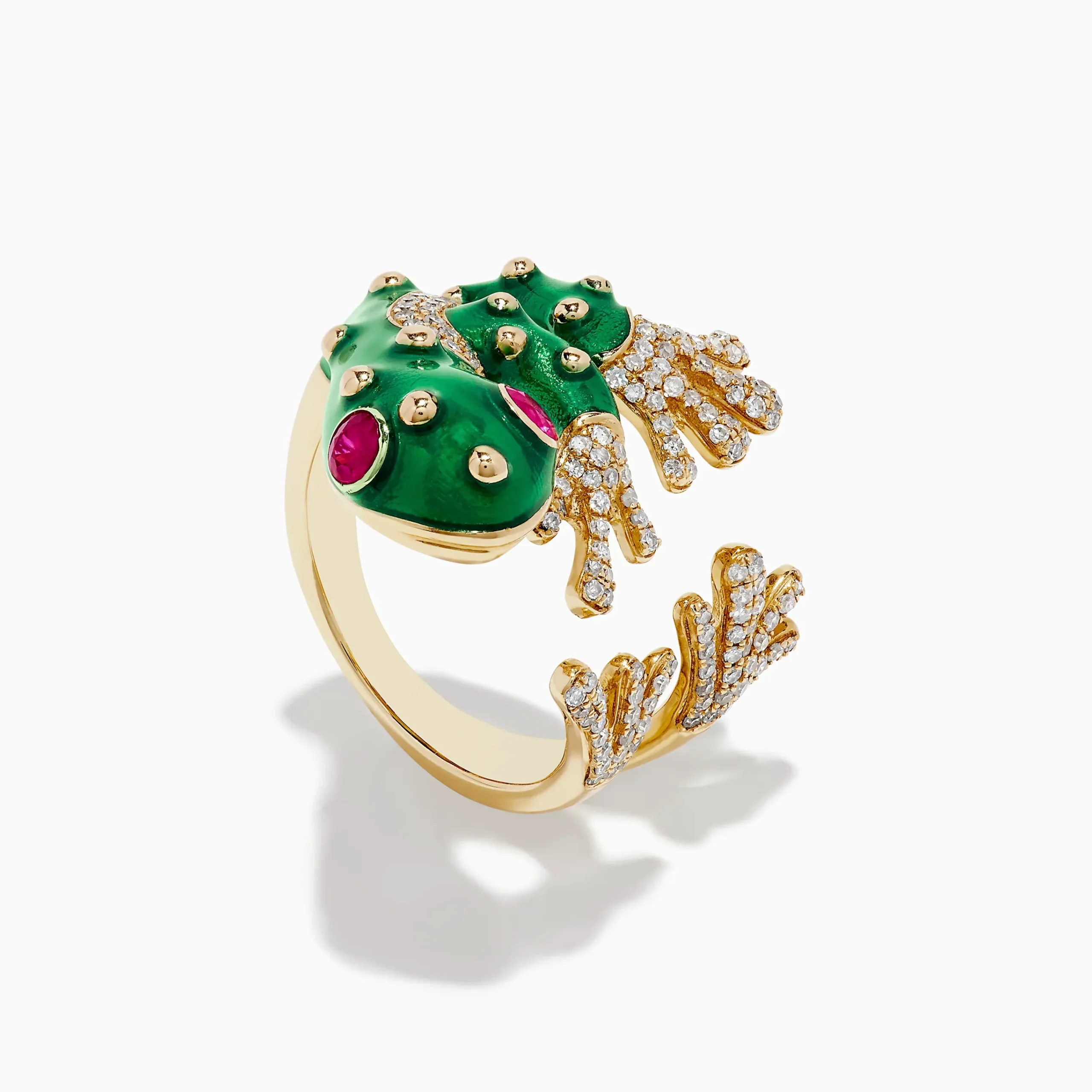 Effy Safari 14K Yellow Gold Ruby and Diamond Frog Ring