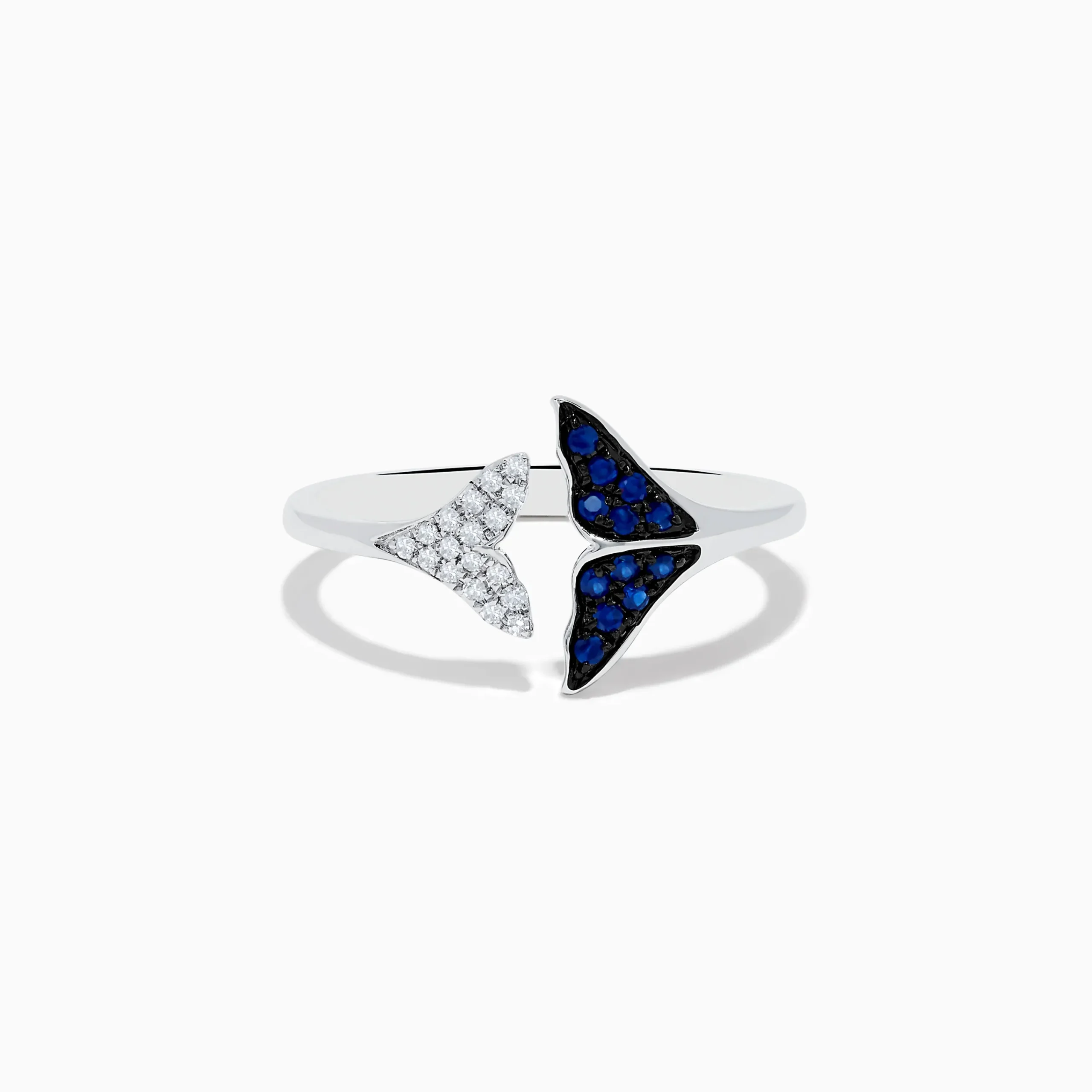Effy Seaside 14K White Gold Sapphire and Diamond Whale Tails Ring, 0.18 TCW
