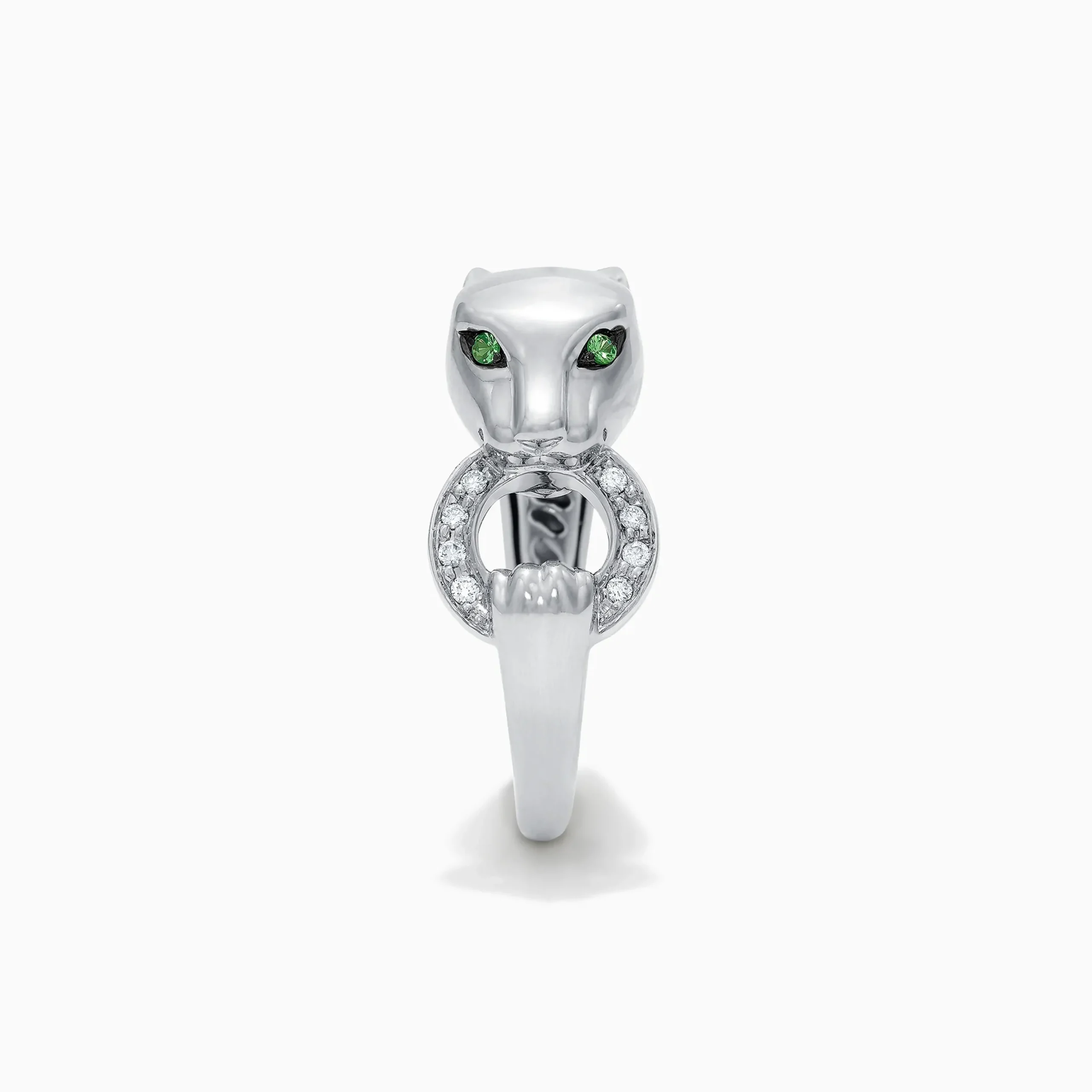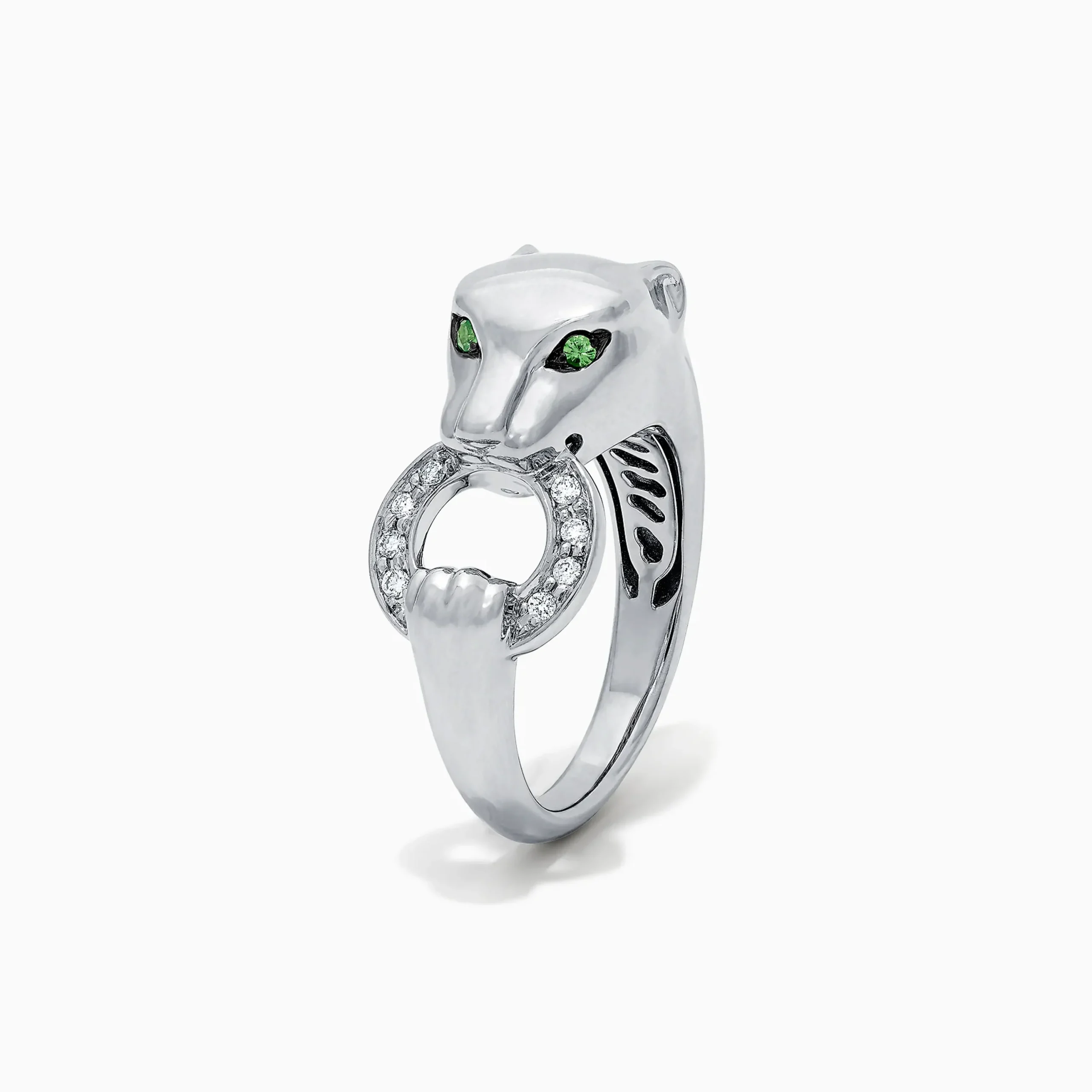 Effy Signature Sterling Silver Diamond and Tsavorite Panther Ring, 0.13 TCW