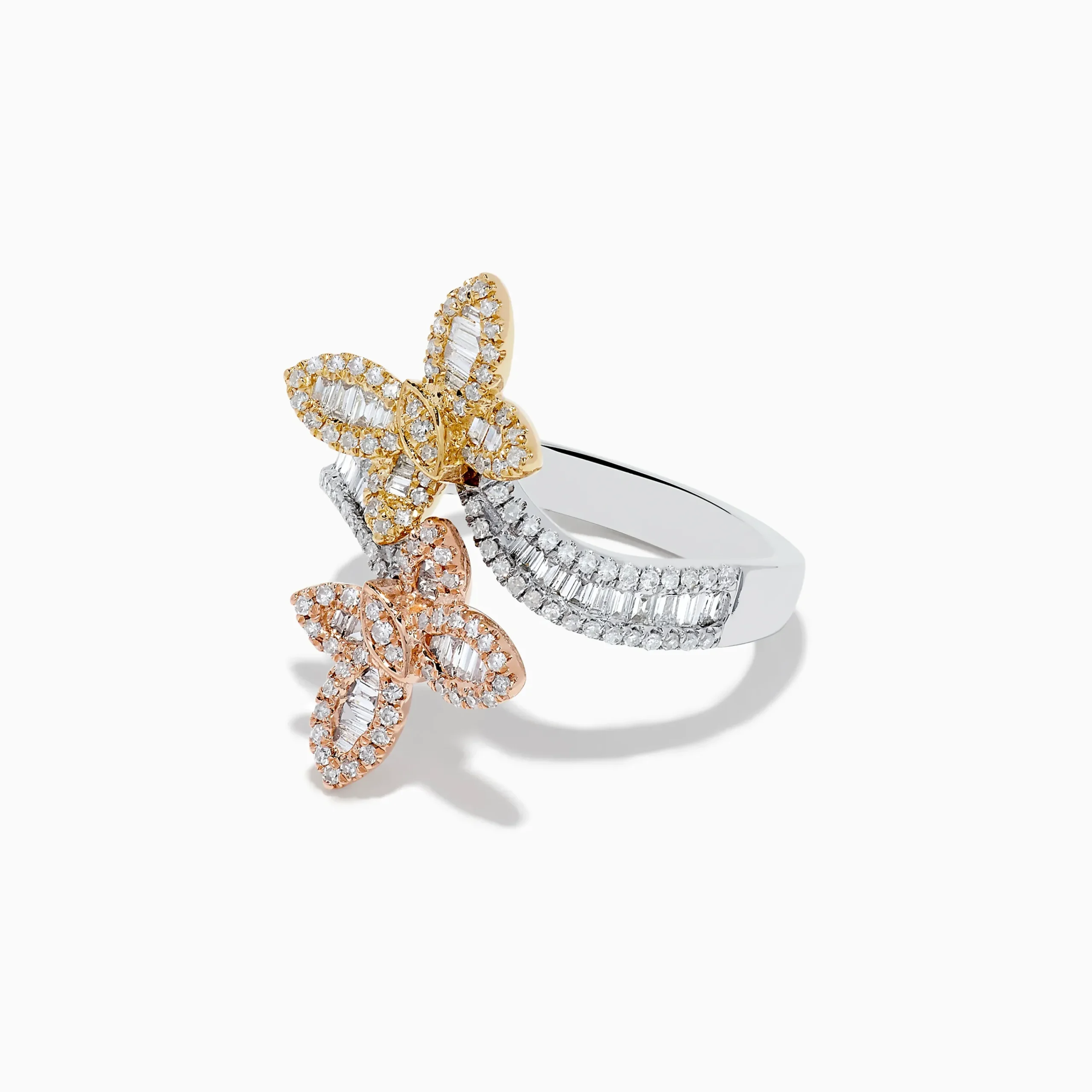 Metal:14K Gold Metal Color:Three ToneStone: Multi Shape Diamond 0.67Effy Trio 14K Three-Tone Gold Diamond Butterfly Bypa…