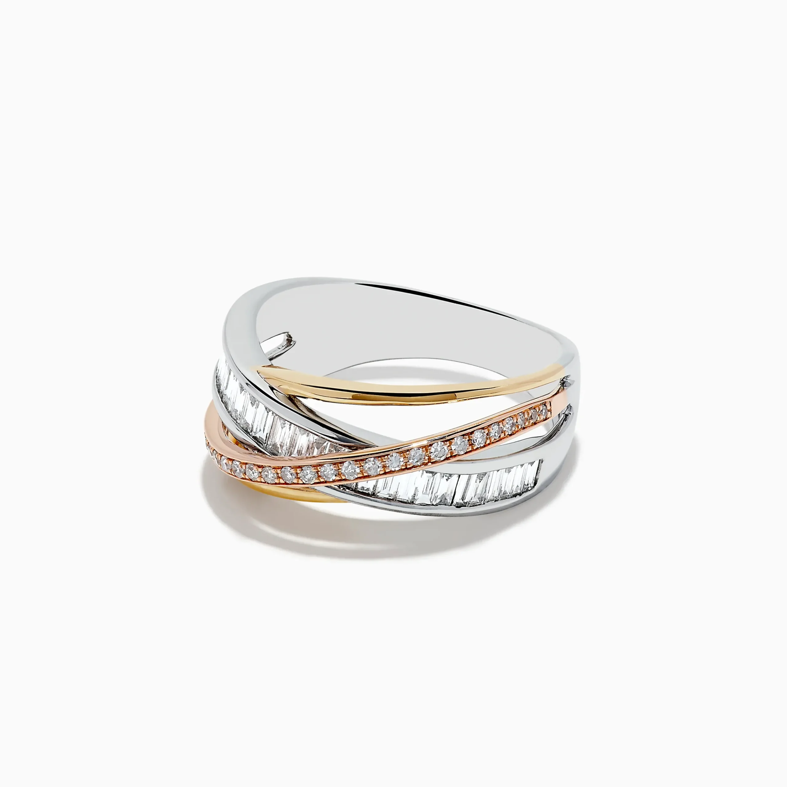Metal:14K Gold Metal Color:Three ToneStone: Multi Shape Diamond 0.6Effy Trio 14K Three-Tone Gold Diamond Crossover Ring
