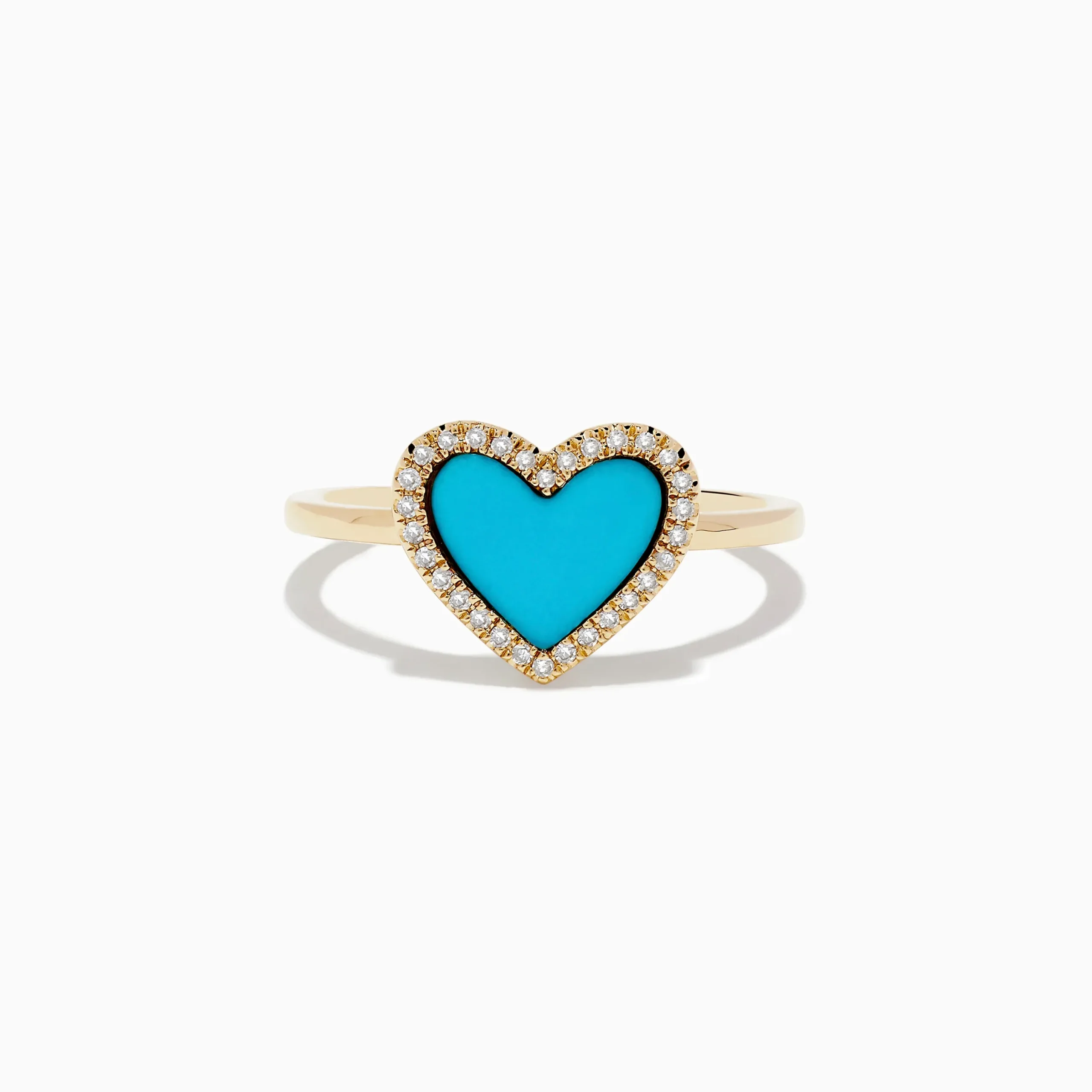 Effy Turquesa 14K Yellow Gold Turquoise and Diamond Heart Ring