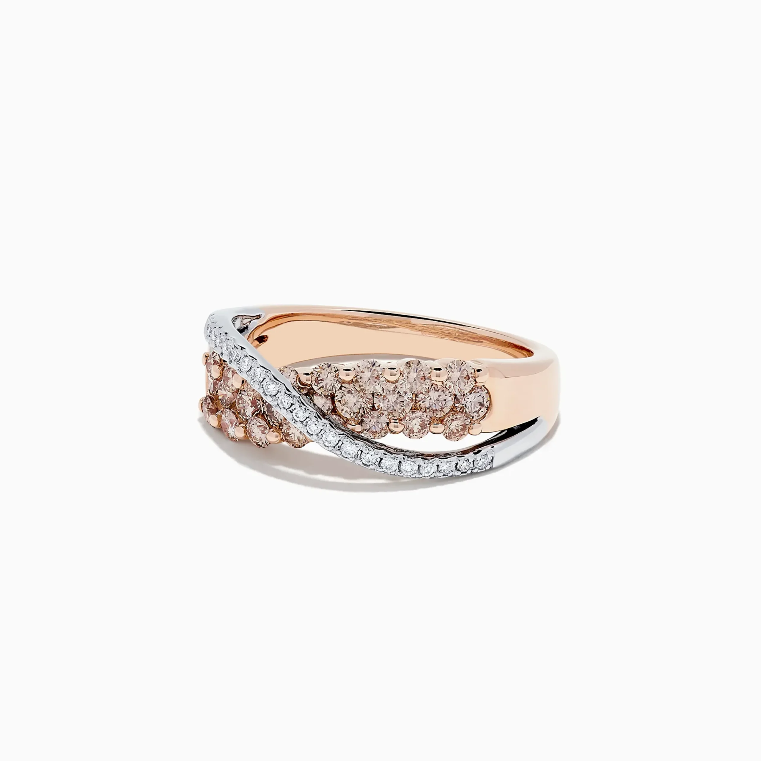Metal:14K Gold Metal Color:Rose and WhiteStone: Round Diamond 114K Two Tone Gold Brown and White Diamond Crossover Ring,…